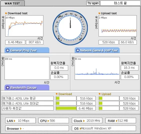 아파트에서 광랜 쓰는사람들은 저속도의 최소 10배 이상은 나오던데
