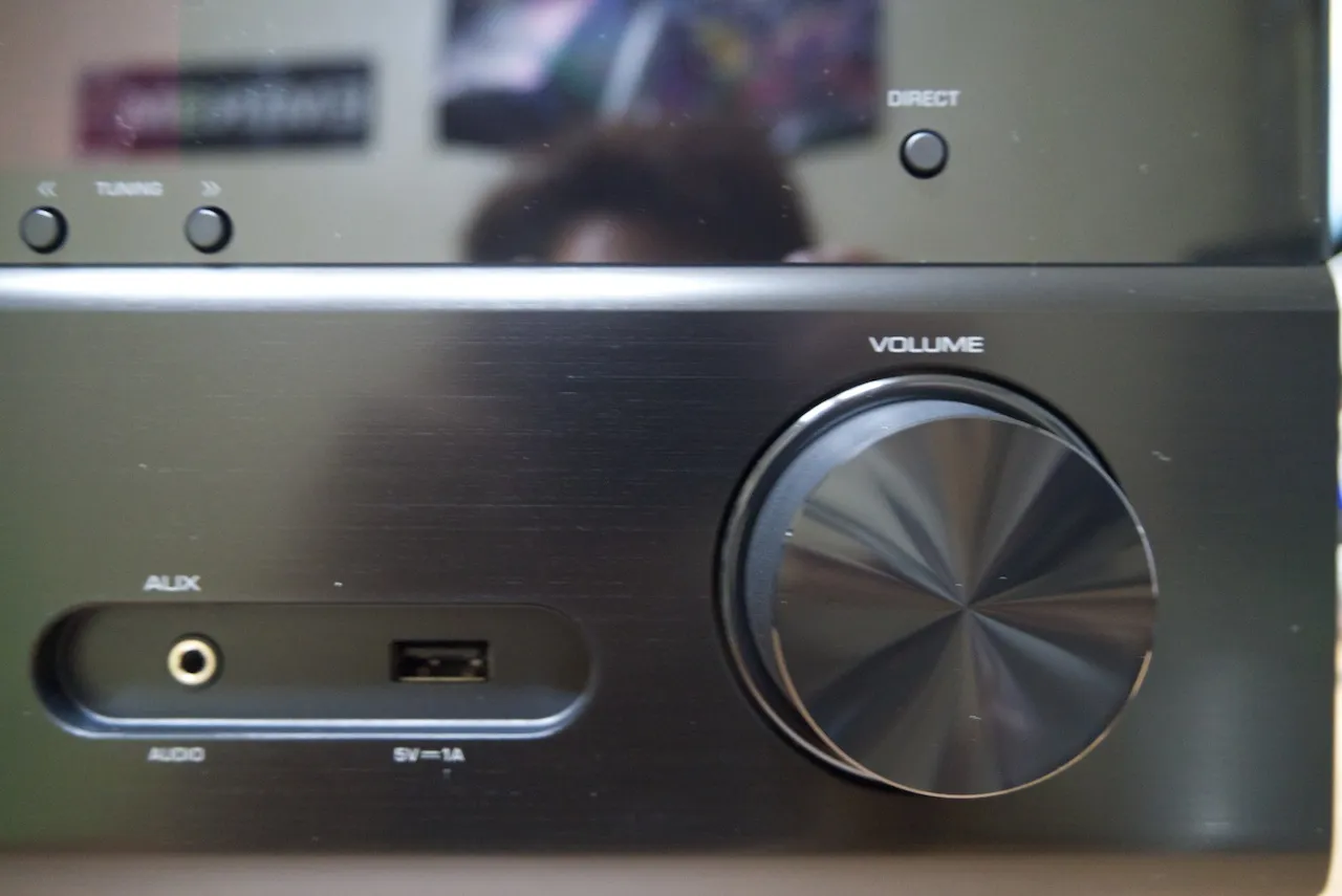 다양한 기능의 버튼이 있지만 전면 옥스(Aux) 단자와 USB포트가 있는게 눈에 띈다.