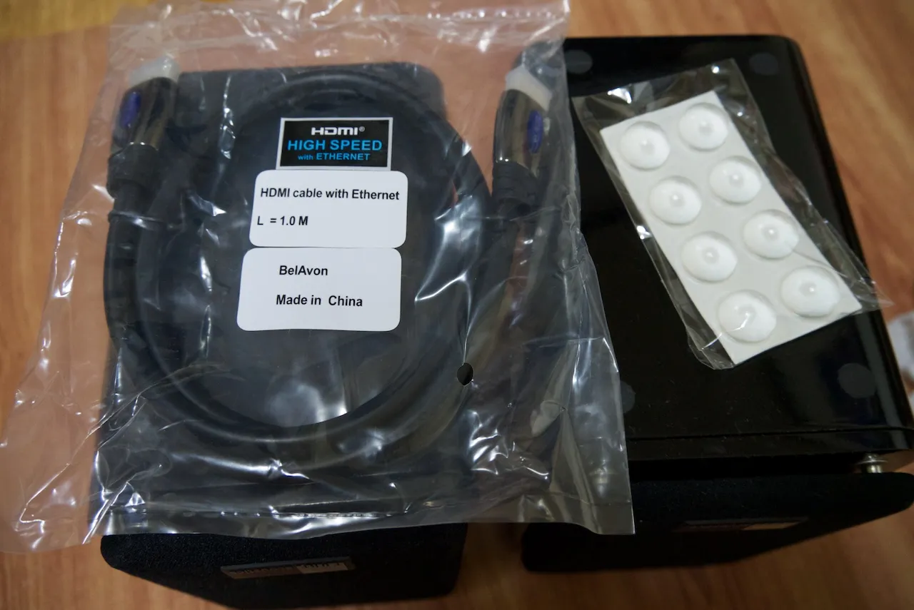 회원가입 후 첫 구매라 고무로 된 스피커 받침(?) 과 1M짜리 HDMI 케이블