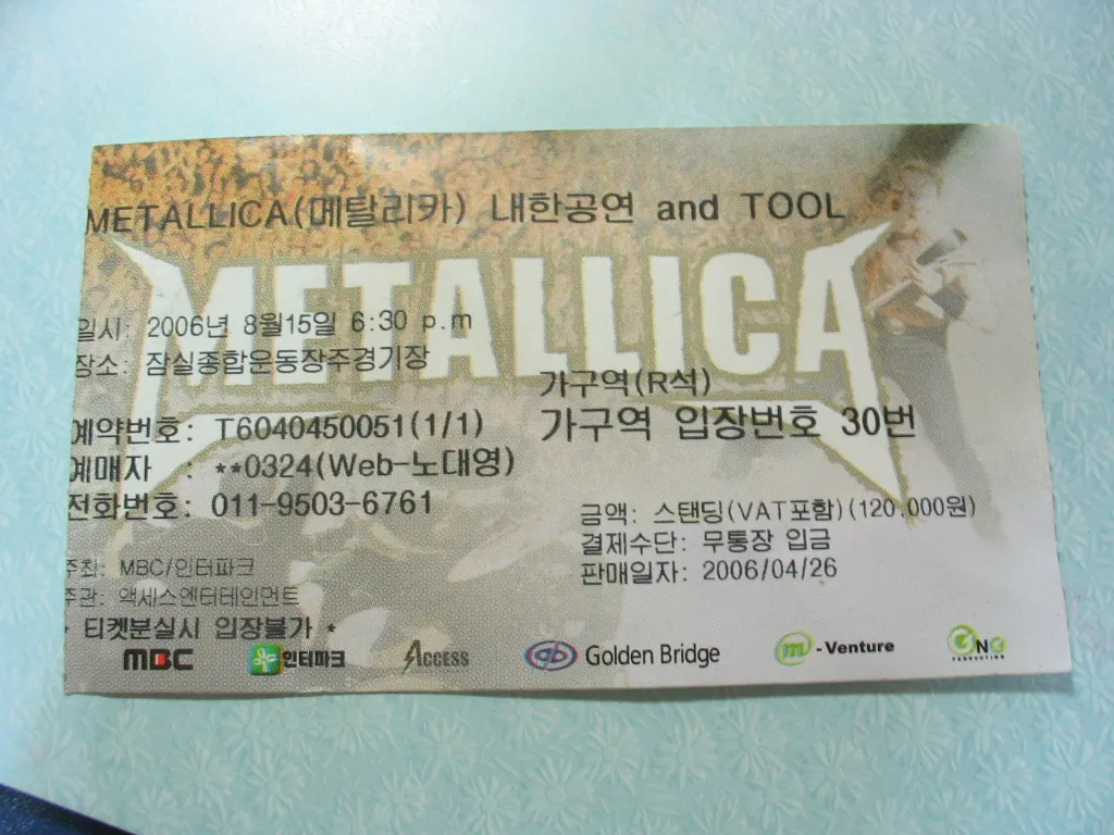 공연자체는 흠잡을때 없이 보여준 메탈리카 엉아들에게 감사를 드린다.