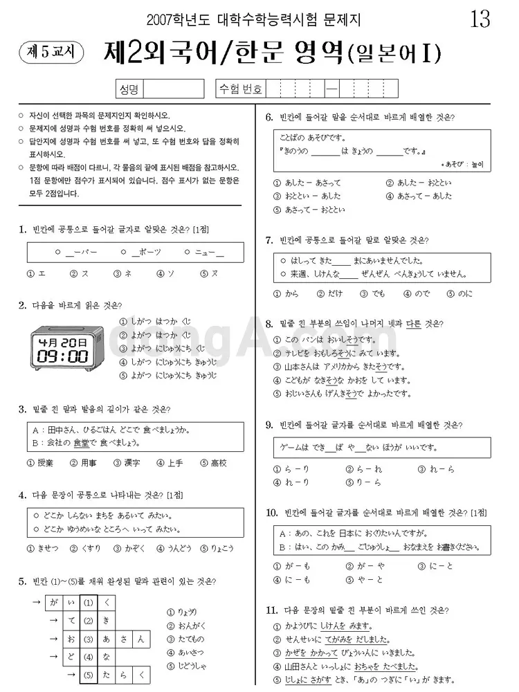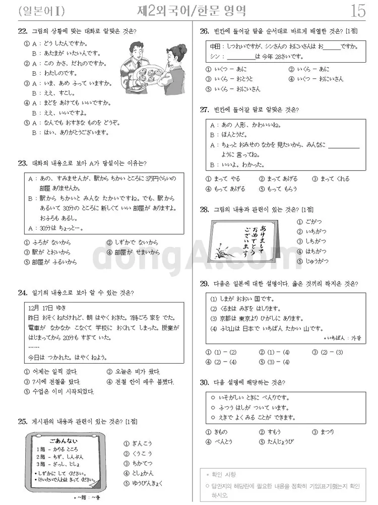 관심기록수능 제2외국어 일본어 문제와 정답2006. 11. 17. 16:05·1분 읽기💬 0나름대로는 겉으로는 일본어를 배우는 입장에서한번 풀어보는것도 좋을듯 해서 올려봅니다.수능 일본어는 그렇게 어려운게 아니라서 쉽게 풀수 있을 난이도 입니다.문제[#M_클릭|닫기| 클릭해서 보세요_M#]정답[#M_클릭|닫기|클릭해서 보세요 _M#]#日本語#수능#일본어공유𝕏🔗 링크 복사관련 글댓글 아직 댓글이 없습니다. 첫 번째 댓글을 남겨보세요.댓글 작성이름 *비밀번호 *웹사이트댓글 내용 *댓글 작성