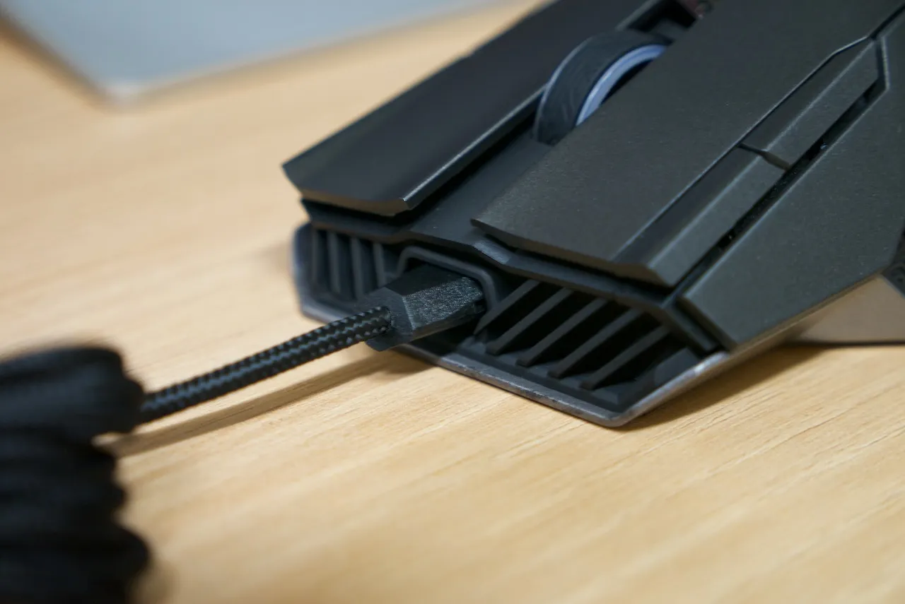 거치대의 경우 움직임이 별로 없지만 케이블 착탈식인 마우스의 경우에는 빠질 염러를 없애기 위한 장치가 따로 있다.