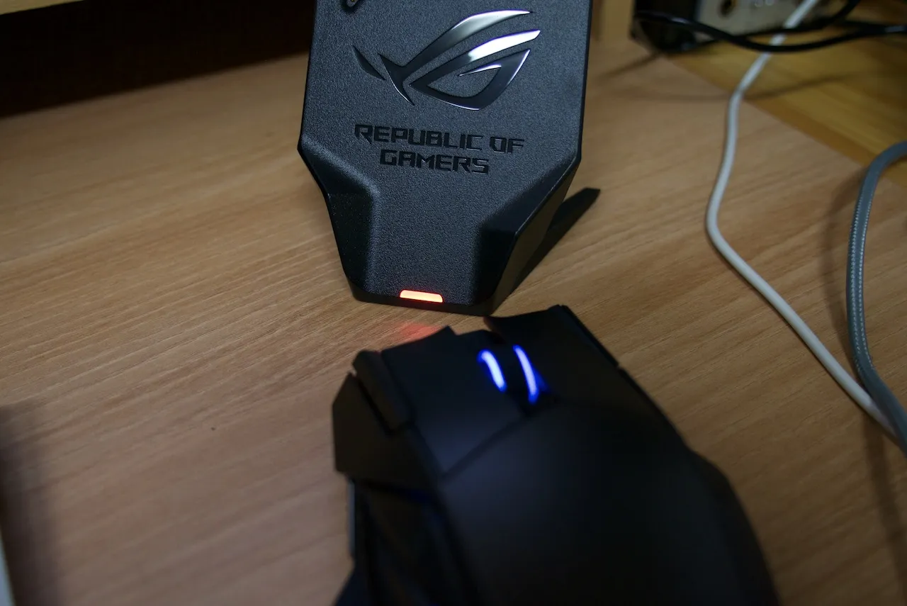 마우스 휠에도 아수스 ROG특유의 무늬가 세겨져 있다.