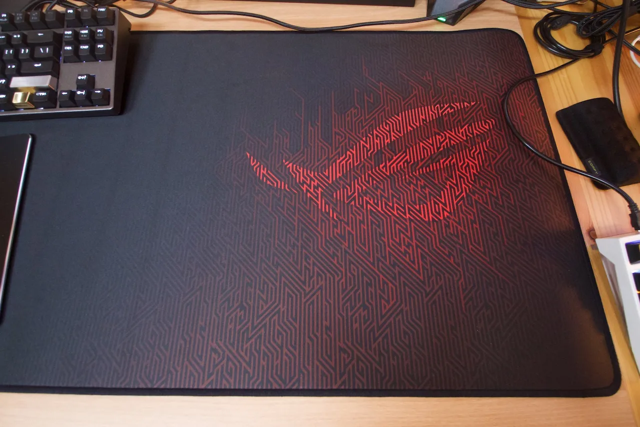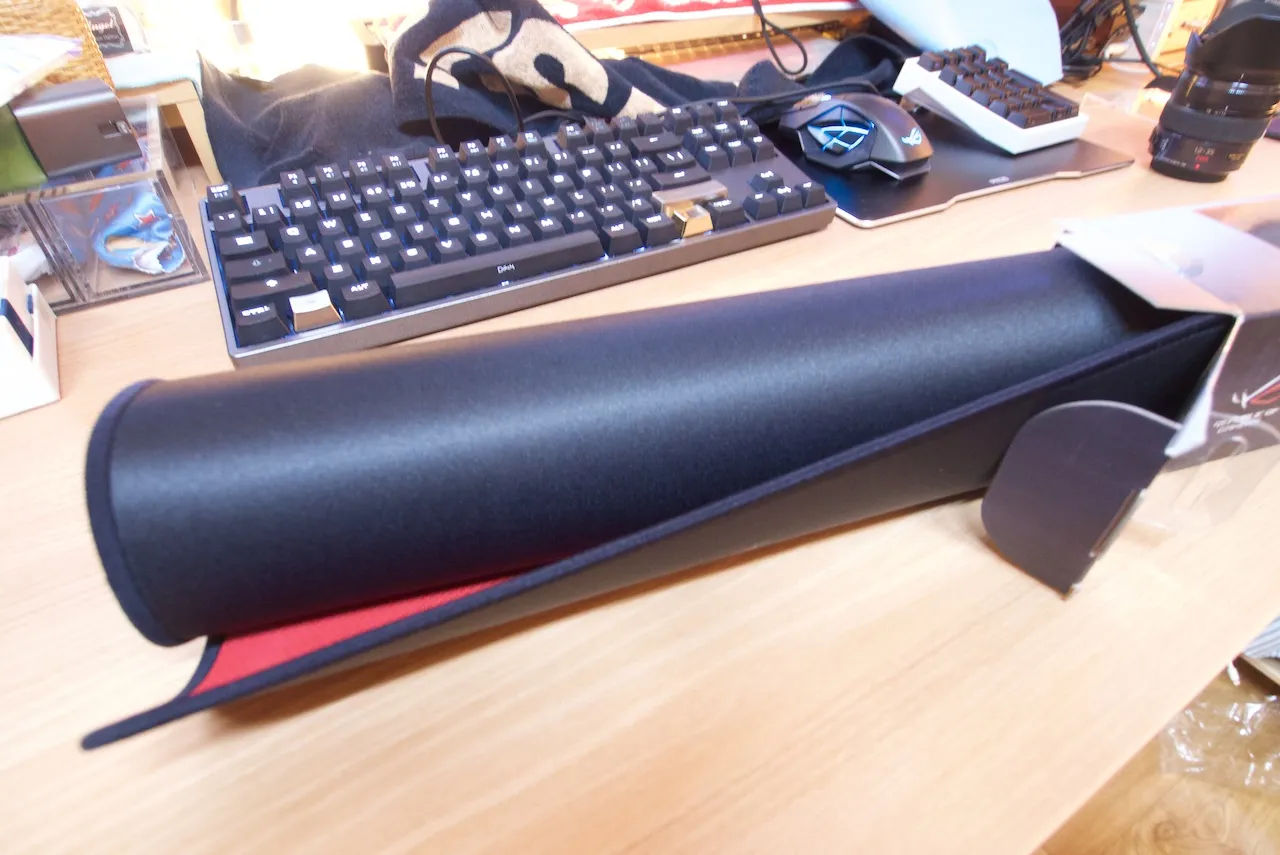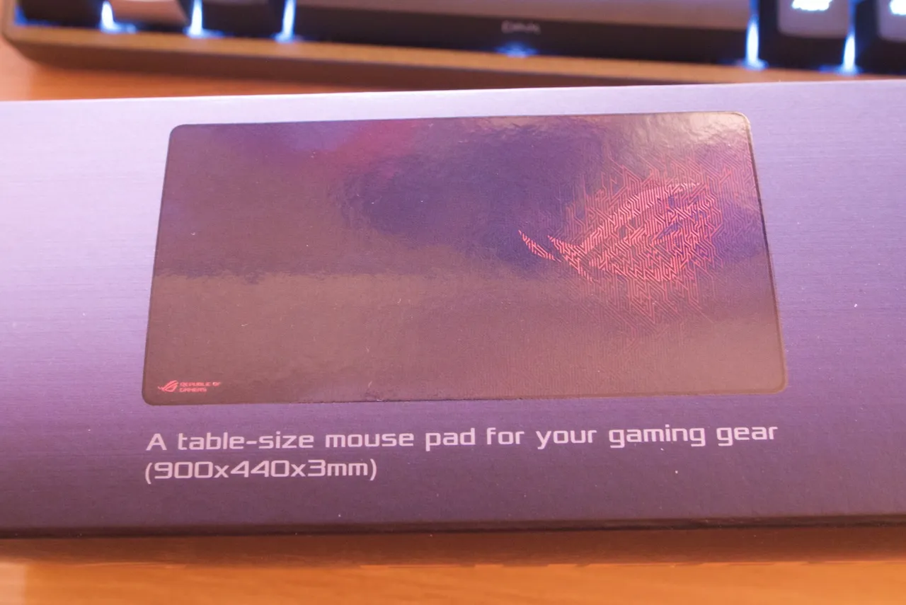 흔히 장패르다로 얘기하는 크기가 매우 큰 천 재질의 마우스 패드인데, ROG 특유의 무늬가 인쇄되어 있어서 상당히 이뻐서 이번에도 아마존을 통해서 구매했다.