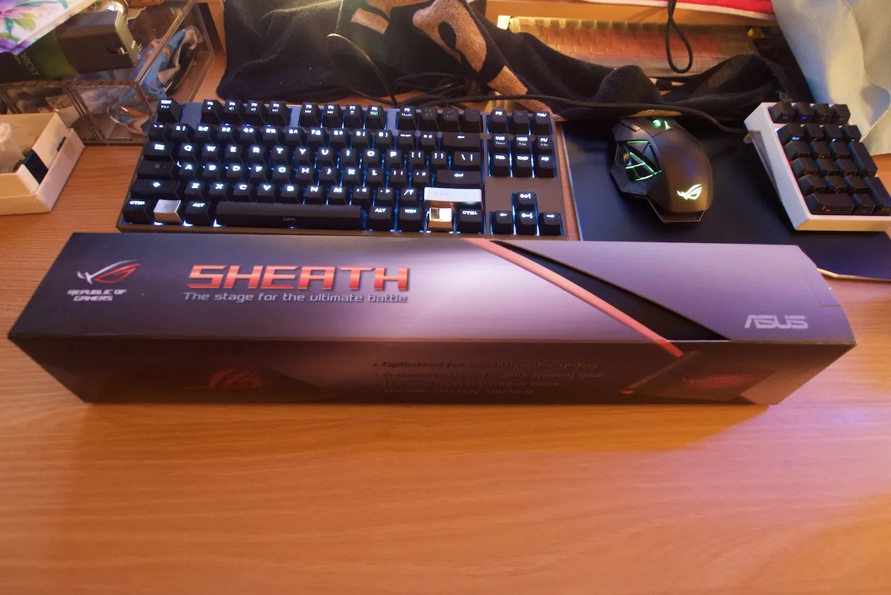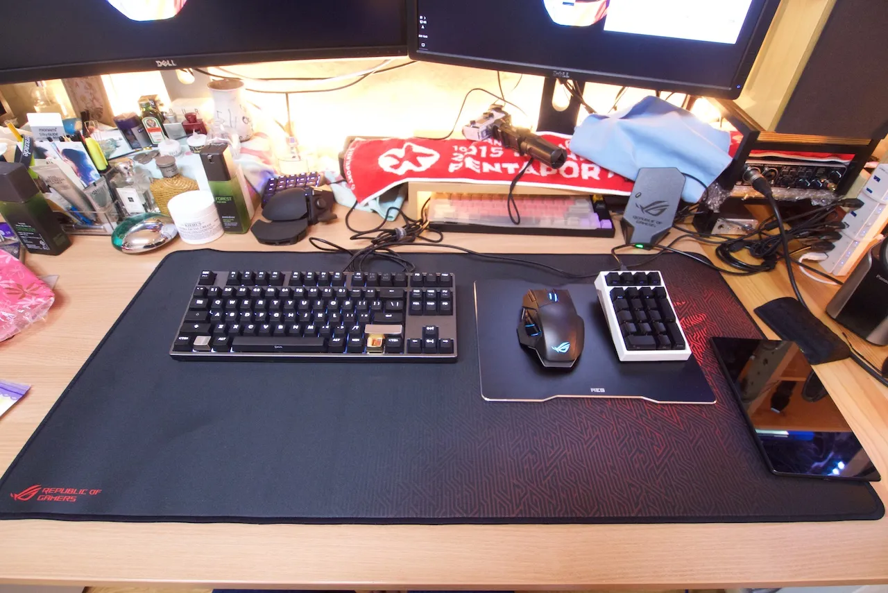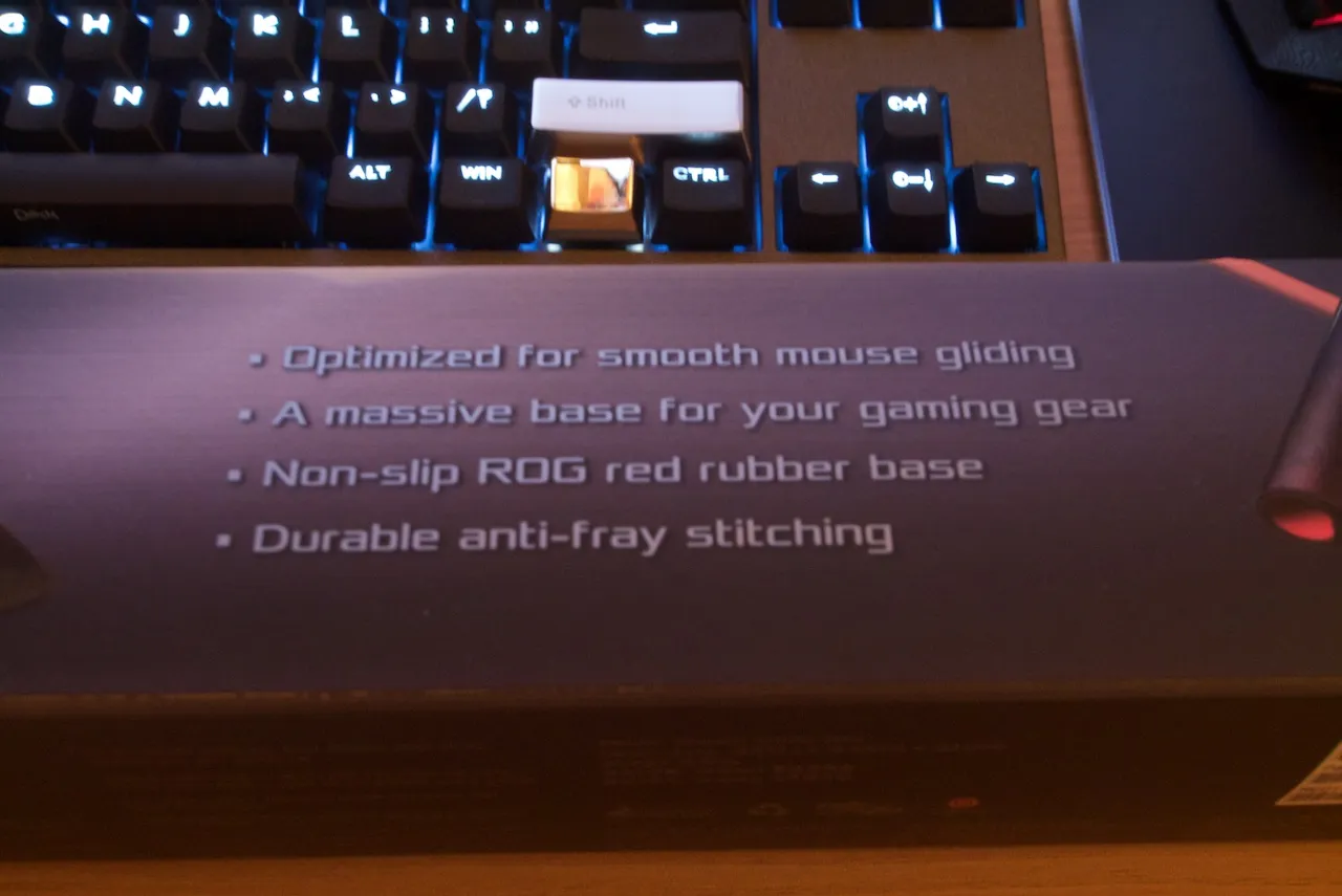 흔히 장패르다로 얘기하는 크기가 매우 큰 천 재질의 마우스 패드인데, ROG 특유의 무늬가 인쇄되어 있어서 상당히 이뻐서 이번에도 아마존을 통해서 구매했다.