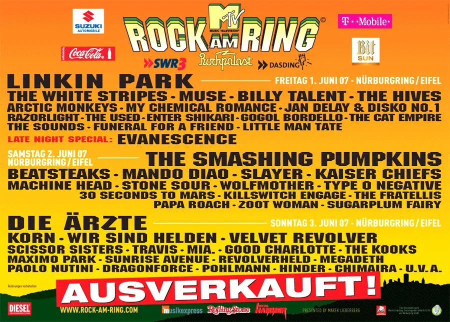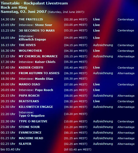 | 22.25 Uhr | THE SMASHING PUMPKINS | (10.25 pm MEST) | Live | Centerstage |