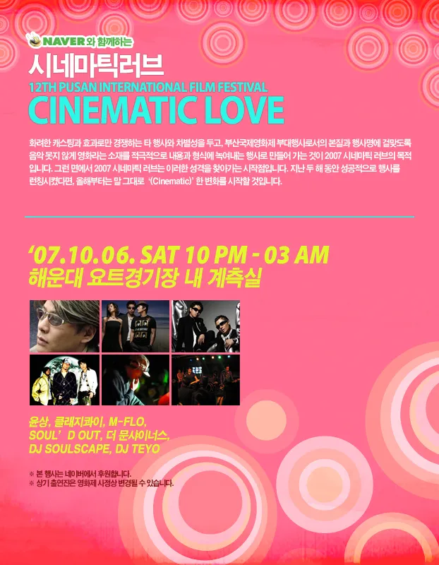 음악부산국제영화제 이벤트 - 시네마틱러브2007. 9. 5. 22:12·1분 읽기💬 0작년에 못 간 게 무진장 후회했던 시네마틱러브 정작 영화는 별로 관심이..;; 올해는 꼭 가야겠다. 미국유학 후 일렉트로니카를 들고 온 윤상의 무대를 볼 수 있다는것 만으로도 행운 그래고 앰플로 까지~~ 낄낄낄 감사합니다 보고싶은 영화도 몇 편 있기는 한데 공연은 혼자서 가겠는데 영화는 혼자서 못 보겠다-_- 그래도 같이 가실부~~~~~~~~~~~~~~~~~우~~~~~~~~~~~~~~~~~~ㄴ #부산국제영화제#시네마틱러브공유𝕏🔗 링크 복사관련 글댓글 아직 댓글이 없습니다. 첫 번째 댓글을 남겨보세요.댓글 작성이름 *비밀번호 *웹사이트댓글 내용 *댓글 작성