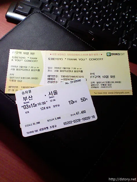 어제 토이 콘서트 티켓이 도착했다.