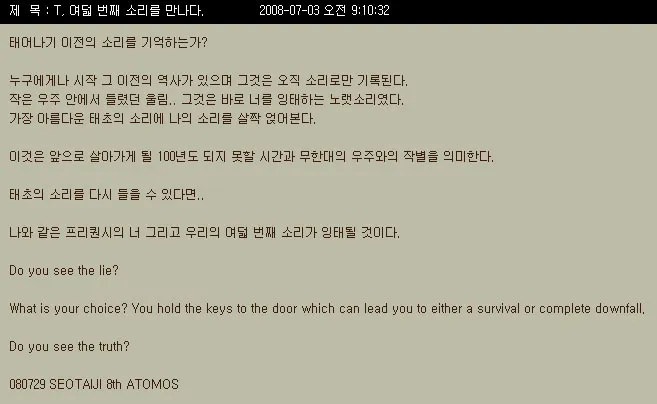 얼마전에 서태지 팬사이트등에서 두 영상의 제작자가 서태지가 아닐까하는 이야기가 돌았는데 그게 사실이었다. 중요한건 이게 끝이 아니라는거다. 도대체 이 끝에는 뭐가 있는것일까? 도대체 우리에게 뭘 보여줄텐가~?