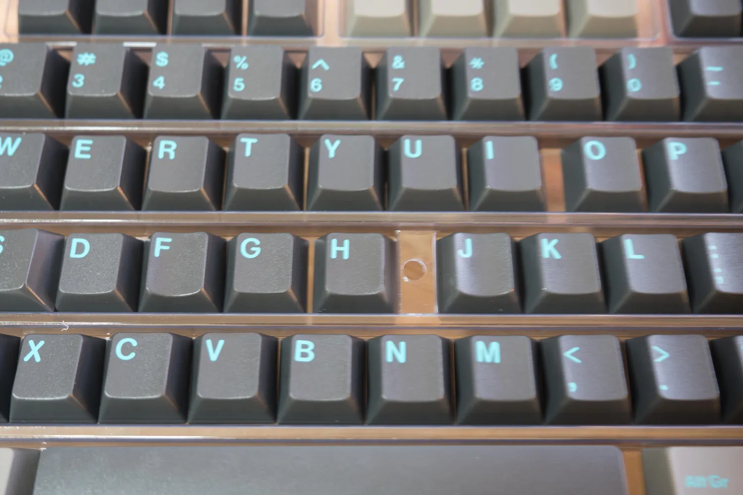 키캡의 특징이자 단점 중 하나가 키보드 타건의 정석 자세일 떄 왼, 오른손의 검지를 놓는 F, J키에 돌기가 없다는 것.