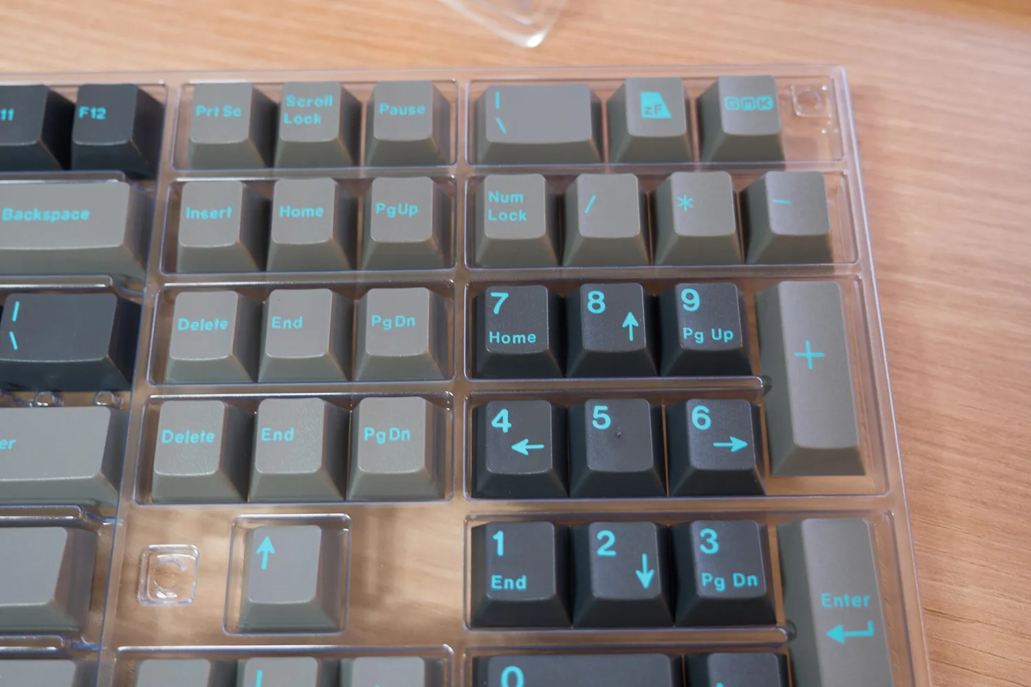 판매 페이지의 그림은 렌더링 이미지라서 실제 키캡과 각인의 색상이 어떻게 나올지 예상만 가능할 뿐이었는데, 각인도 잘 보이고 키캡의 색상도 꽤 잘 뽑아 냈다.