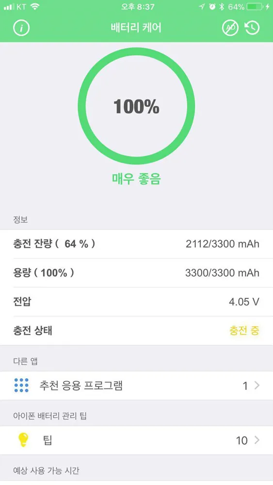 교체 후의 배터리 상태인데 용량은 정상적으로 잡힌다. 이전과 마찬가지로 정상적으로 작동이 될런지 살짝 긴장되기도 하는데 잘 되길 바랄뿐.