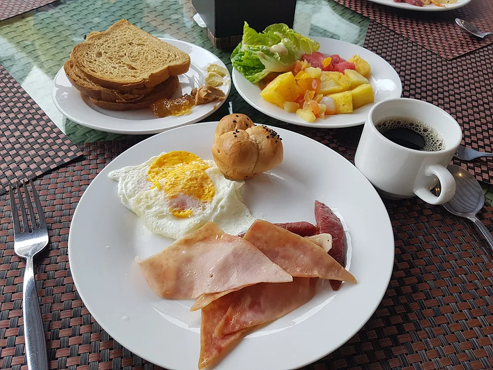 사진 처럼 3접시나 담아와서 평소에는 전혀 먹지도 않는 아침을 아주 배부르게 만족하면서 먹었다.