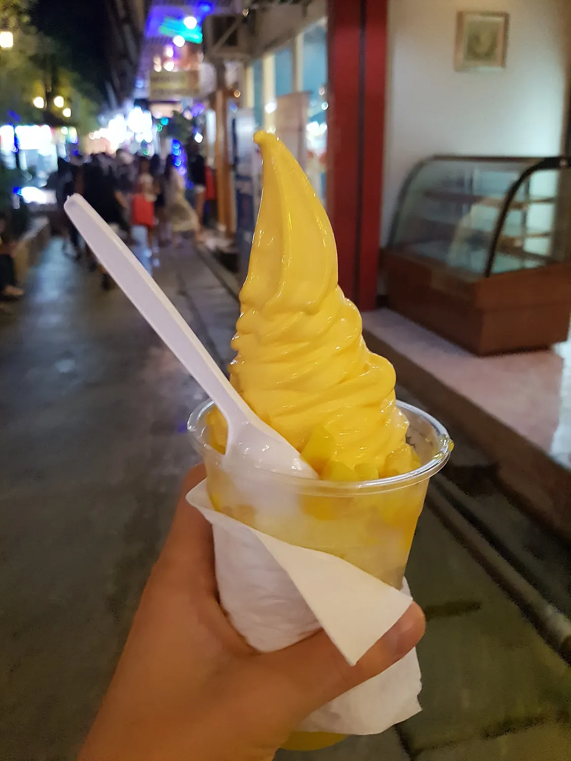 그리고 입가심으로 망고 아이스크림을 먹었는데, 망고니 맛이 없을 수도 없고 날도 날이니 만큼 맛있게 먹었다. 생각해보니 조식이랑 망고류가 제일 맛있는 음식으로 기억된다;
