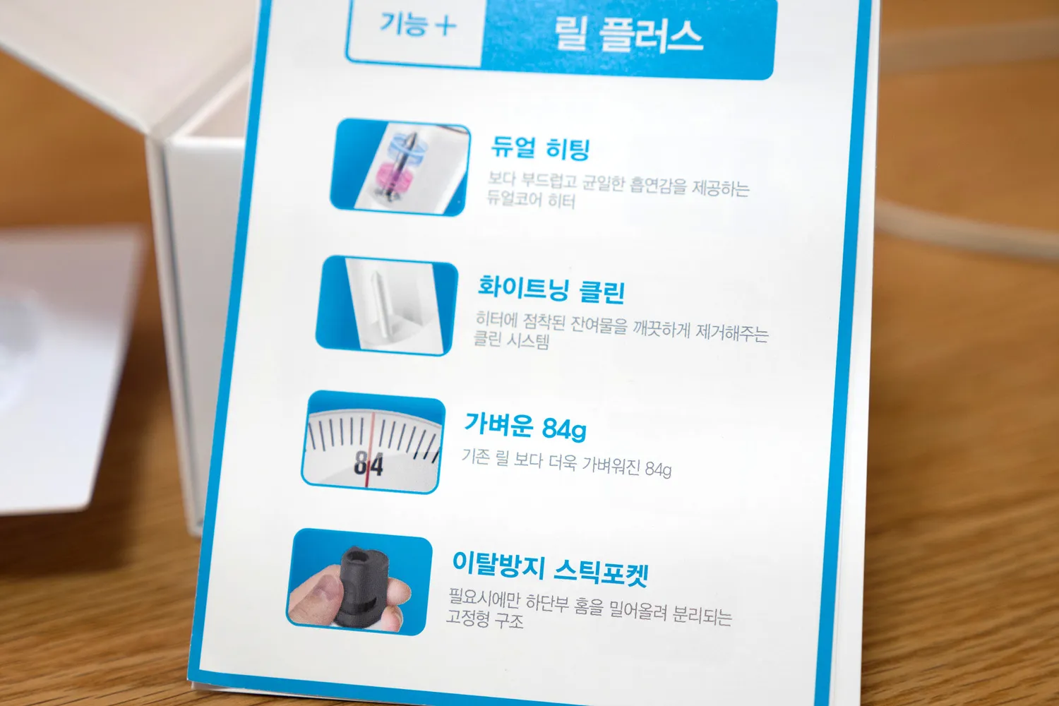 릴플러스가 나왔다. 지난 1월 구매한 릴을 현재까지 잘 쓰고 있고 약 6개월간 연초는 태운 경우는 극히 드물 정도로 만족하고 있다. 물론 담배 맛은 만족스럽지는 않지만 연초의 진한 냄새가 몸과 손에 묻을 일이 없다는게 가장 마음에 들어서 계속 피고 있다.