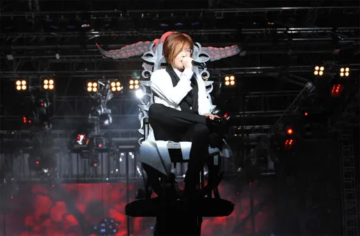 T자형 무대 끝으로 오더니.. 어라 의자가 있네? 거기 앉아서 노래가 나오길 기다렸는데... 어라 이게 뭐야? 갑자기 그 의자가 움직이기 시작했다. 잠시 상승하더니 관객석위를 한바퀴 돌았다.
