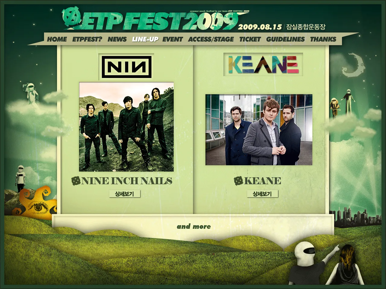 음악ETPFEST.com 홈페이지 오픈!!2009. 7. 10. 07:17·1분 읽기💬 0 http://www.etpfest.com/ NIN과 KEANE 대박이다. ㅠ.ㅠ etpfest 예매는 14일 부터 인터파크에서 한다는 기사가 떳고 앵콜공연은 29, 30일날 열릴꺼라는 카더라가 떠도는 중. 그러면 감사요. ㅠㅠ(못 갈 수도 있겠지만;) #etpfest#Keane#nin#nine inch nails#서태지#음악#이티피페스트공유𝕏🔗 링크 복사관련 글댓글 아직 댓글이 없습니다. 첫 번째 댓글을 남겨보세요.댓글 작성이름 *비밀번호 *웹사이트댓글 내용 *댓글 작성