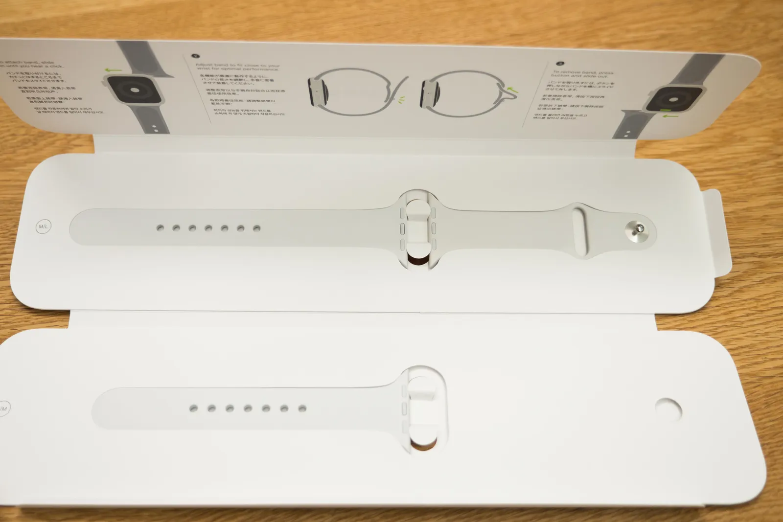가죽밴드 모델이 없어서 어쩔 수 없이 스포츠 밴드로 구매했는데, 흰색이라 때도 잘 타서 얼마나 사용할 지는 모르겠다.