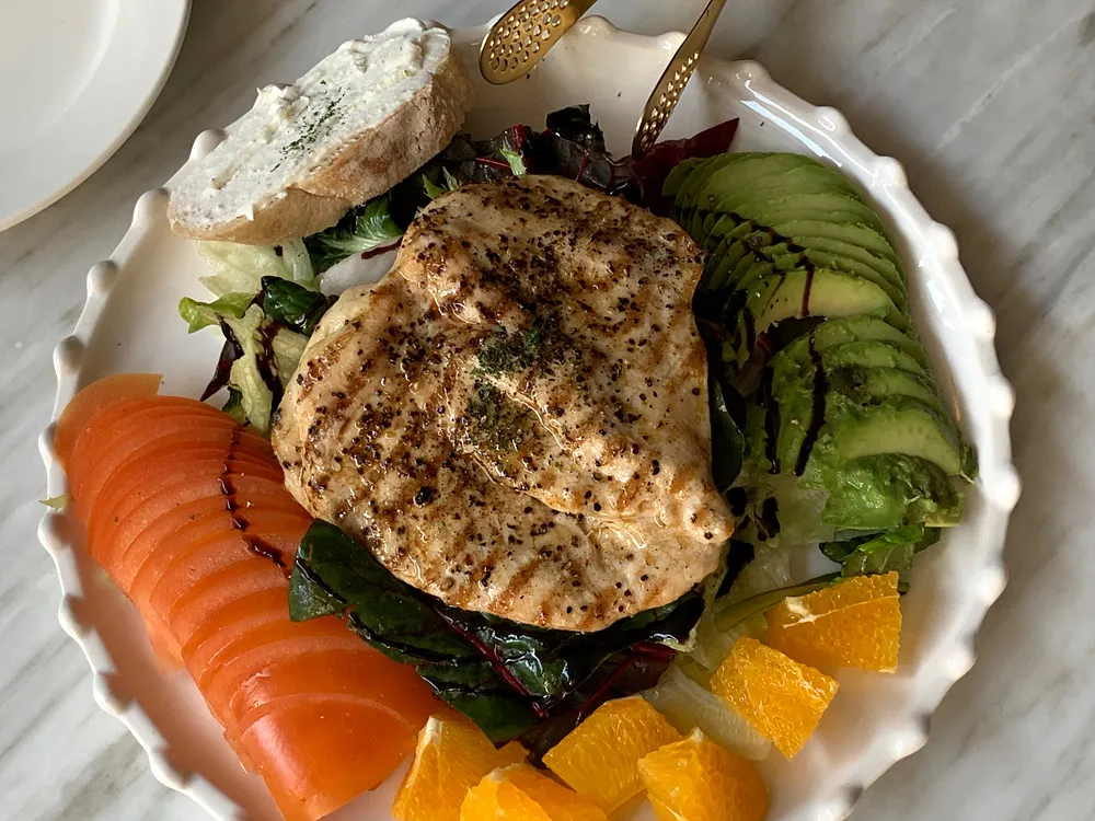 치킨 샐러드의 치킨은 잘 구워졌고 후추로 인해 꽤나 맛있었다. 아보카도는 처음 먹어봤는데, 시원하고 새콤 달콤한 과일을 좋아하는 내에게는 맞지 않는 음식이다.