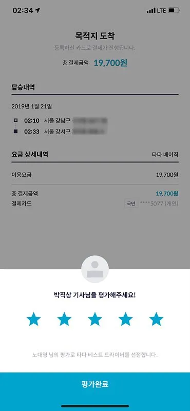 요금 지불은 앱에 미리 등록한 카드로 되니 내릴 때도 기사님께 인사만 하면 된다. 아! 그리고 차량의 문은 자동이라 내가 여닫을 필요가 없다.