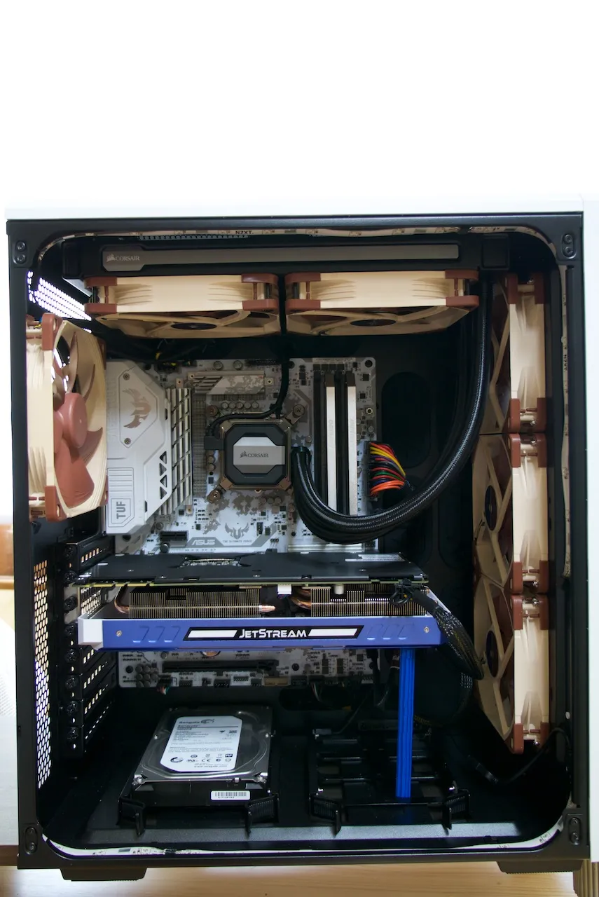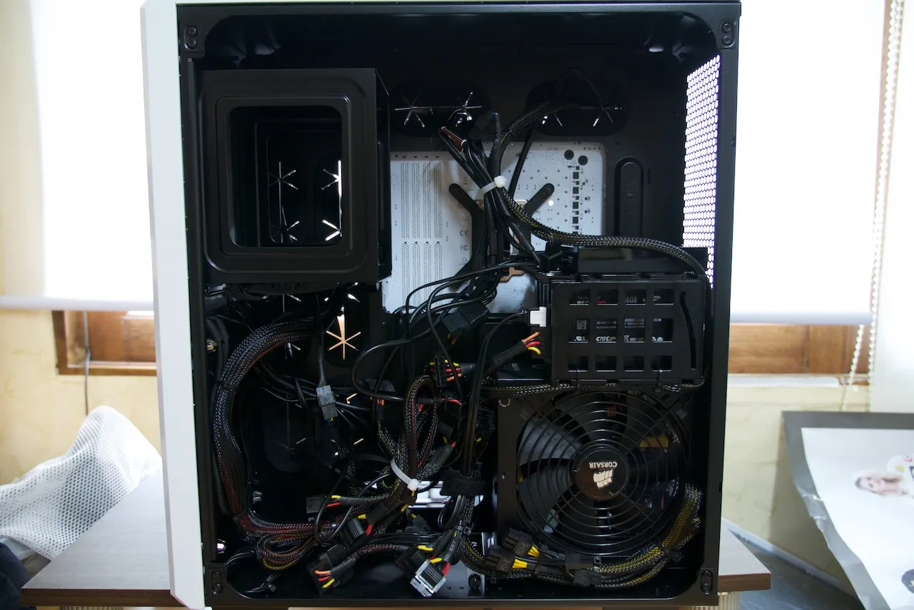 컴퓨터 맞추기전부터 커세어에 꽃혀서 상당히 많은 지분을 차지하고 있다. 특히 케이스는 공간이 나눠져있어 파워는 뒷편에 위치해 있어 메인보드 영역에는 많은 케이블들이 보이지 않는 장점이 있다. 그만큼 높이는 낮지만 두께는 두껍다.