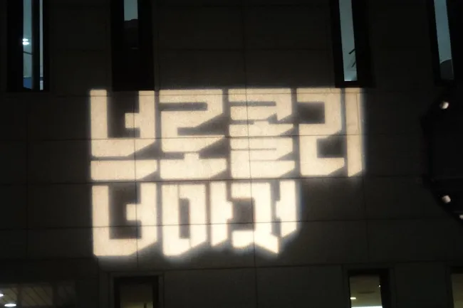 세종문화회관 어느 건물 벽에 비춰진 브로콜리 너마저 로고.