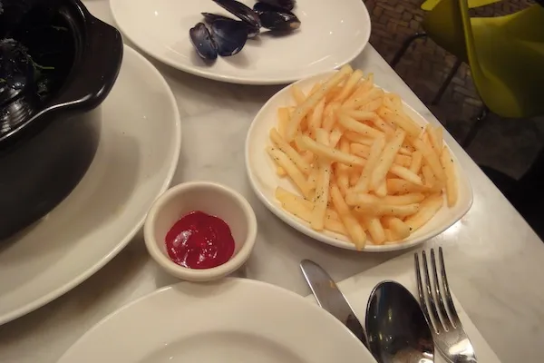 짤쪼름하고 고소한 크림국물의 홍합..에 곁들여 나오는 고소하고 바삭한 감자.