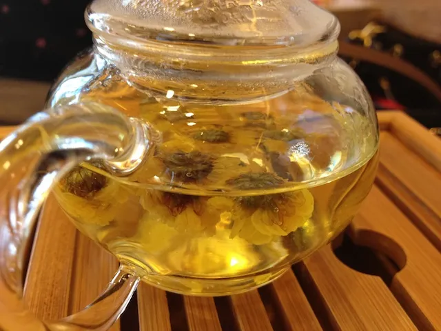 꽃봉우리로 차를 우려내는데 이게 따뜻한 물이 들어가니 꽃이 활짝 피는 진풍경이...