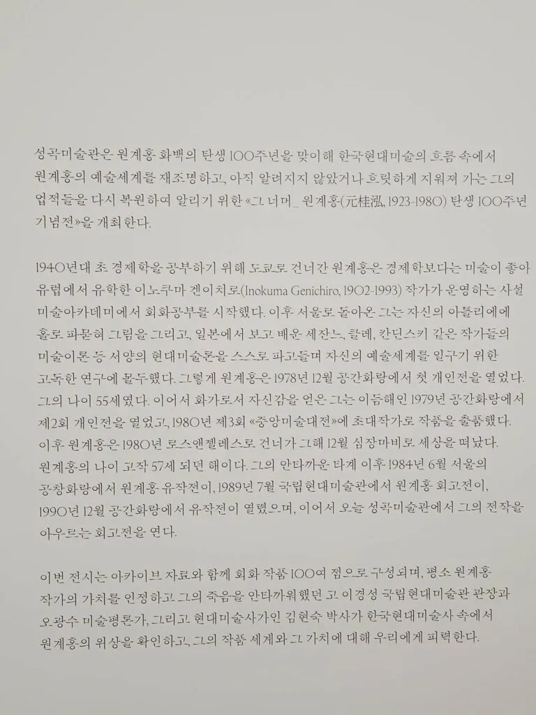 그 너머_ 원계홍(元桂泓, 1923-1980) 탄생 100주년 기념전Beyond_ The Centennial Exhibition of Guei-Hong WON – Sungkok Art Museum (sungkokmuseum.org)