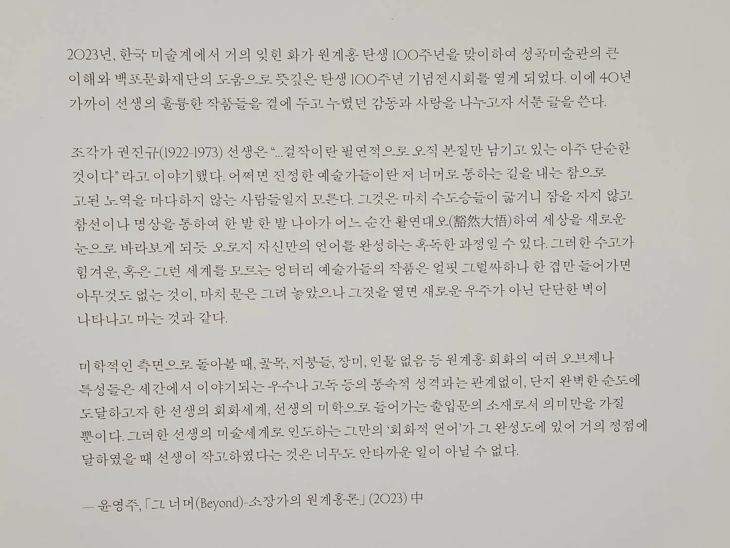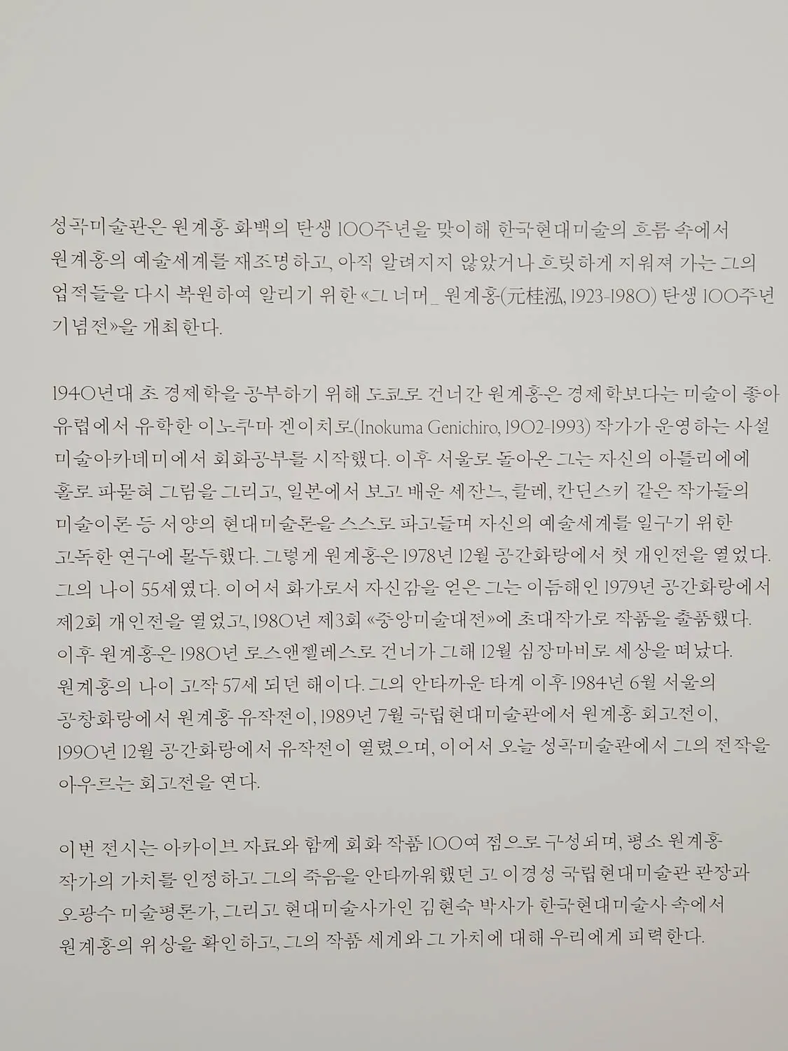 2023.3. <그 너머 원계홍 탄생 100주년 기념전 (성곡미술관, 2023.3.16.~5.21.)