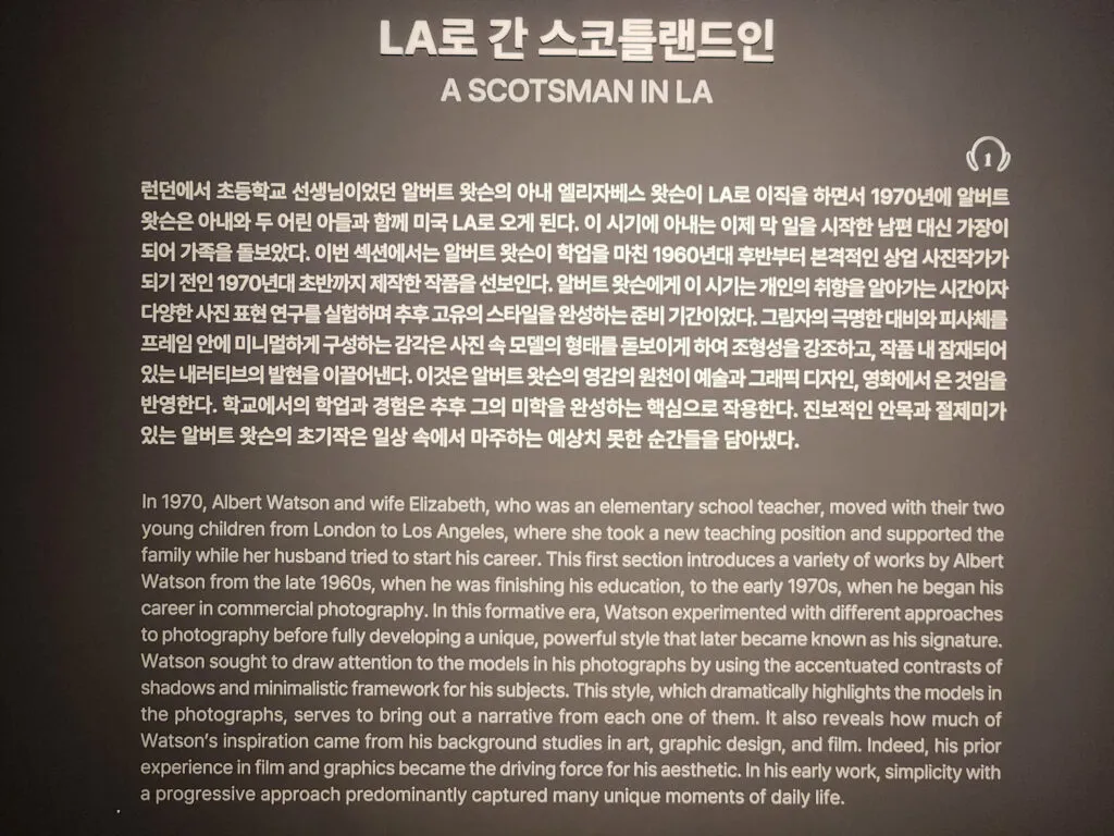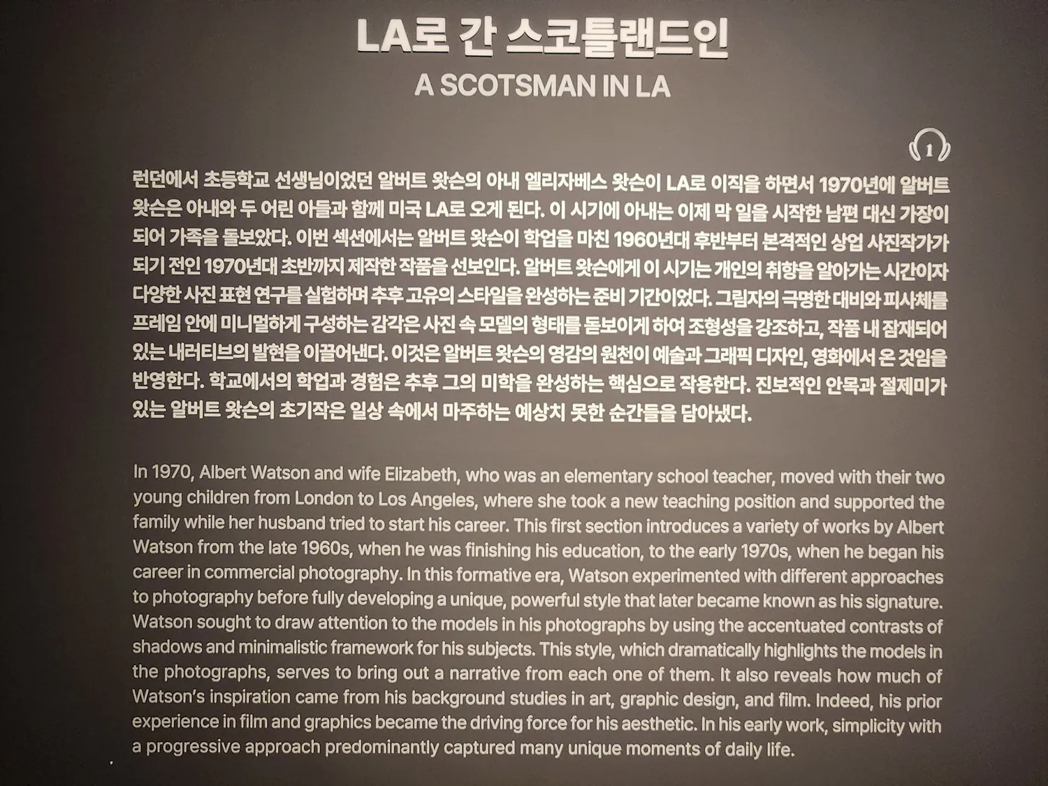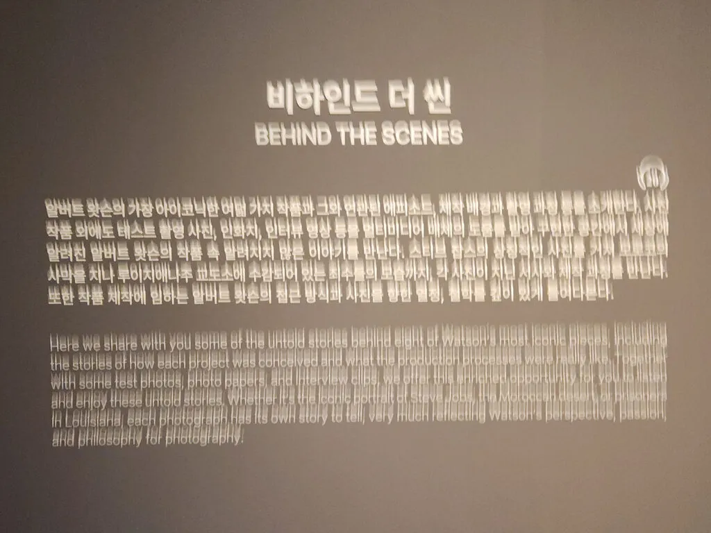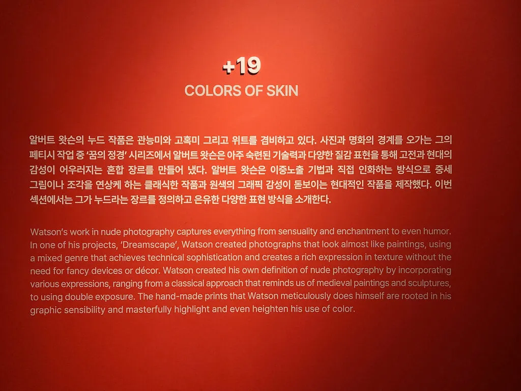 “알버트 왓슨의 아주 특별한 기술이 녹아 있는 잉크 시리즈 중 일부로 질감이 있는 잉크를 겹겹이 중첩해 바르고 이미지와 통합해 기존 작품을 재해석하고 새로운 의미를 부여했다. 이중노출 기법으로 제작한 작품과 더불어 알버트 왓슨의 실험정신이 돋보이는 작품이다.”