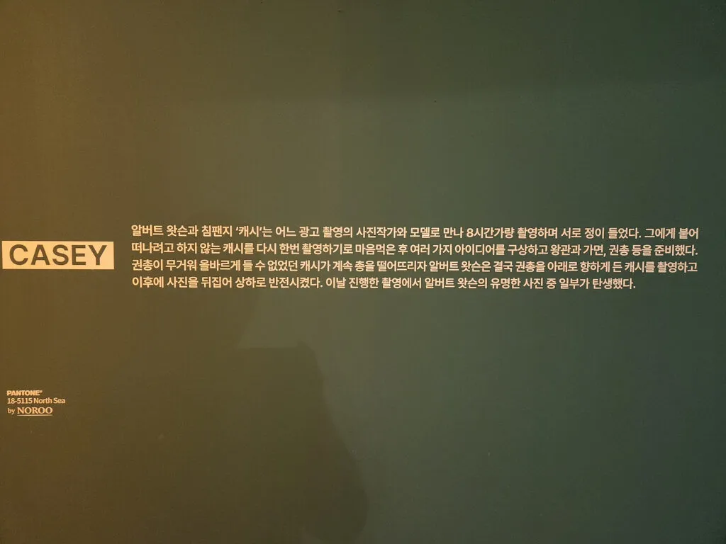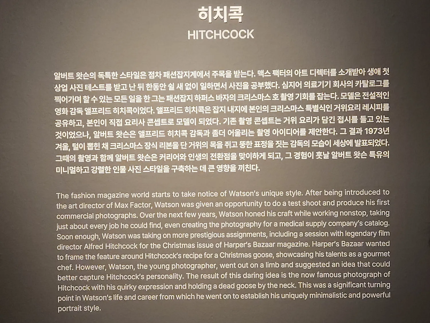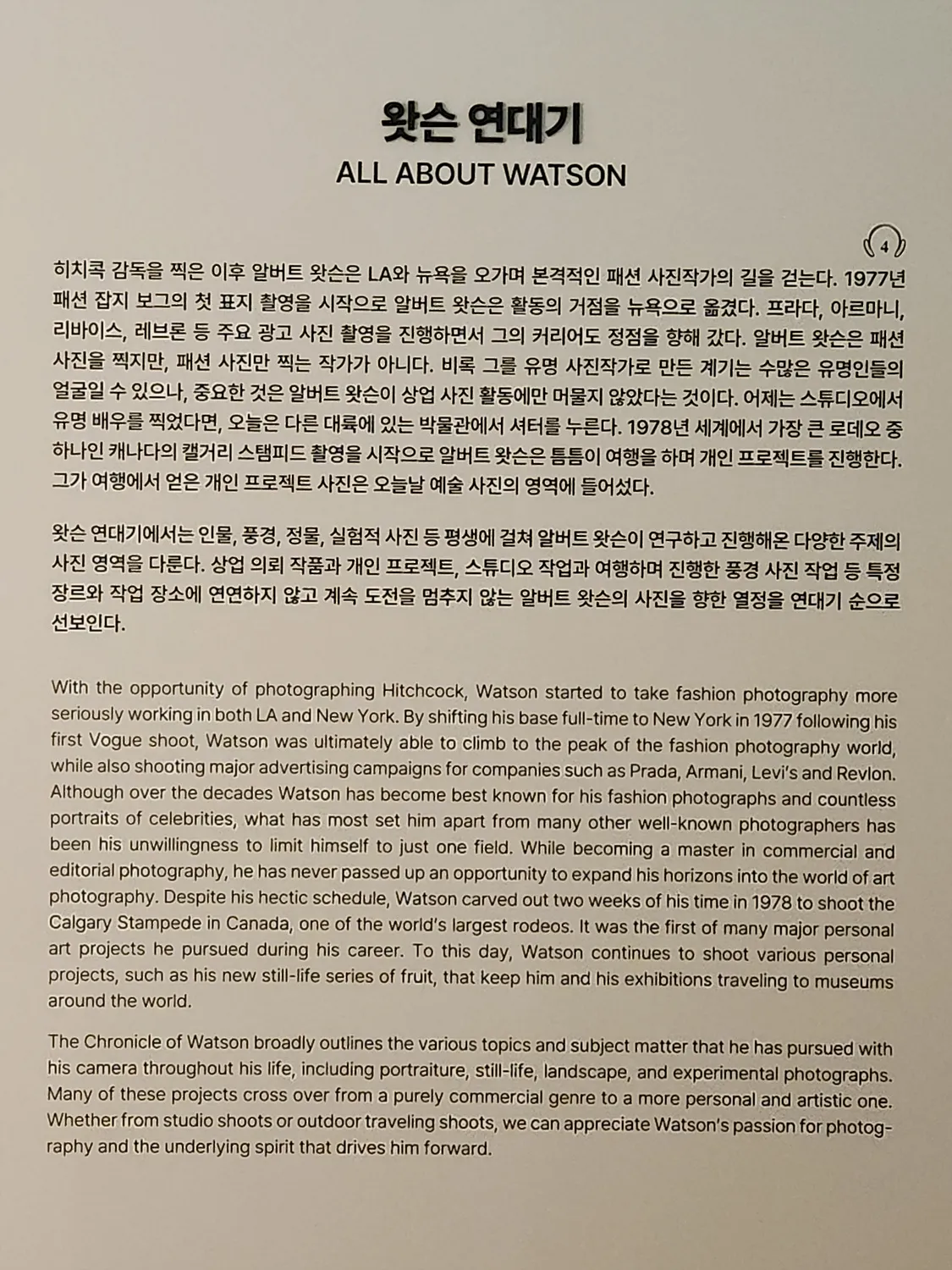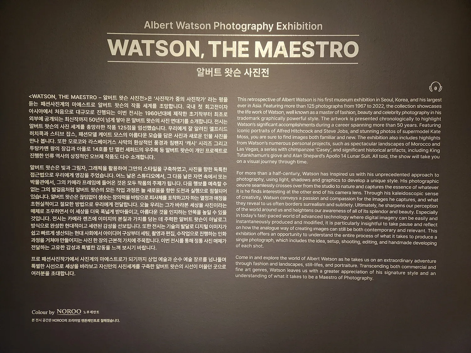 “알버트 왓슨의 아주 특별한 기술이 녹아 있는 잉크 시리즈 중 일부로 질감이 있는 잉크를 겹겹이 중첩해 바르고 이미지와 통합해 기존 작품을 재해석하고 새로운 의미를 부여했다. 이중노출 기법으로 제작한 작품과 더불어 알버트 왓슨의 실험정신이 돋보이는 작품이다.”