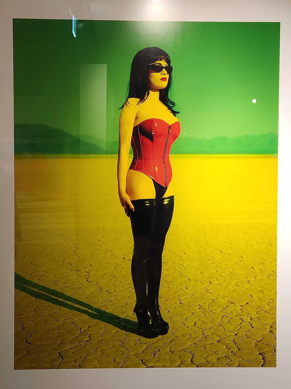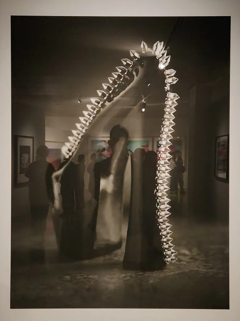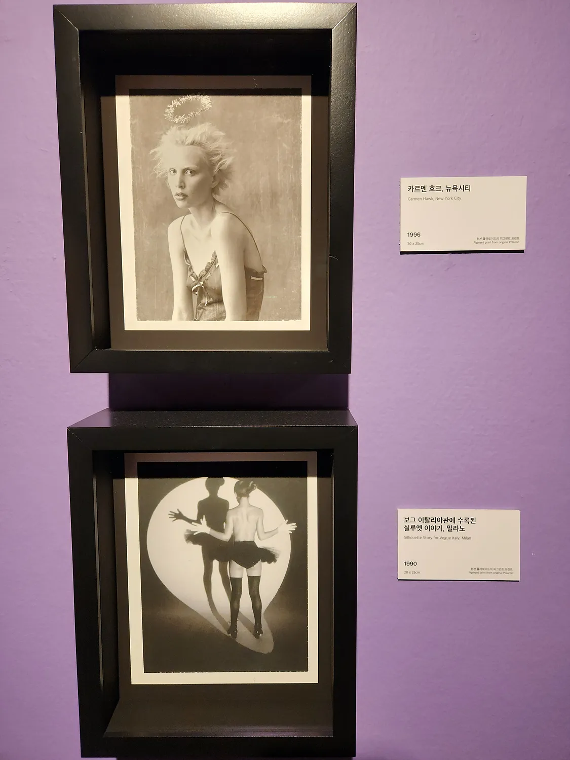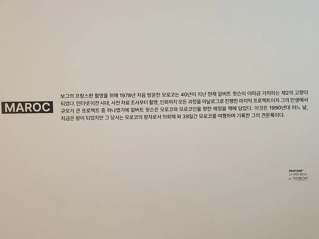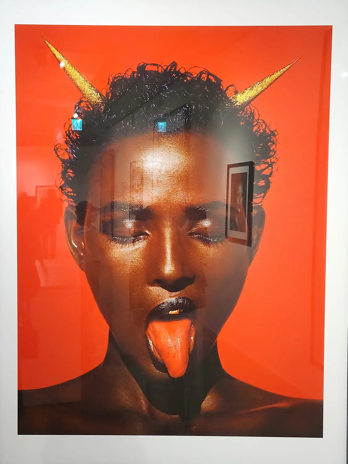 “모로코에서 모델 와리스 다리와 진행한 작업은 모든 것이 잘 갖춰진 스튜디오가 아닌 낯선 촬영 장소에서 본인이 준비해 온 것들을 활용해 찍은 것이다. 붉은 천에 백라이트를 설치한 뒤 색소가 가미된 식품으로 혀를 붉게 물들이고, 금색 종이를 말아 뿔을 만들었다. 이 사진은 디지털 이전 시대에 비싼 스튜디오나 화려한 조명, 값비싼 장치 장식 없어도 좋은 결과물을 만들어 낼 수 있다는 것을 보여준다.”