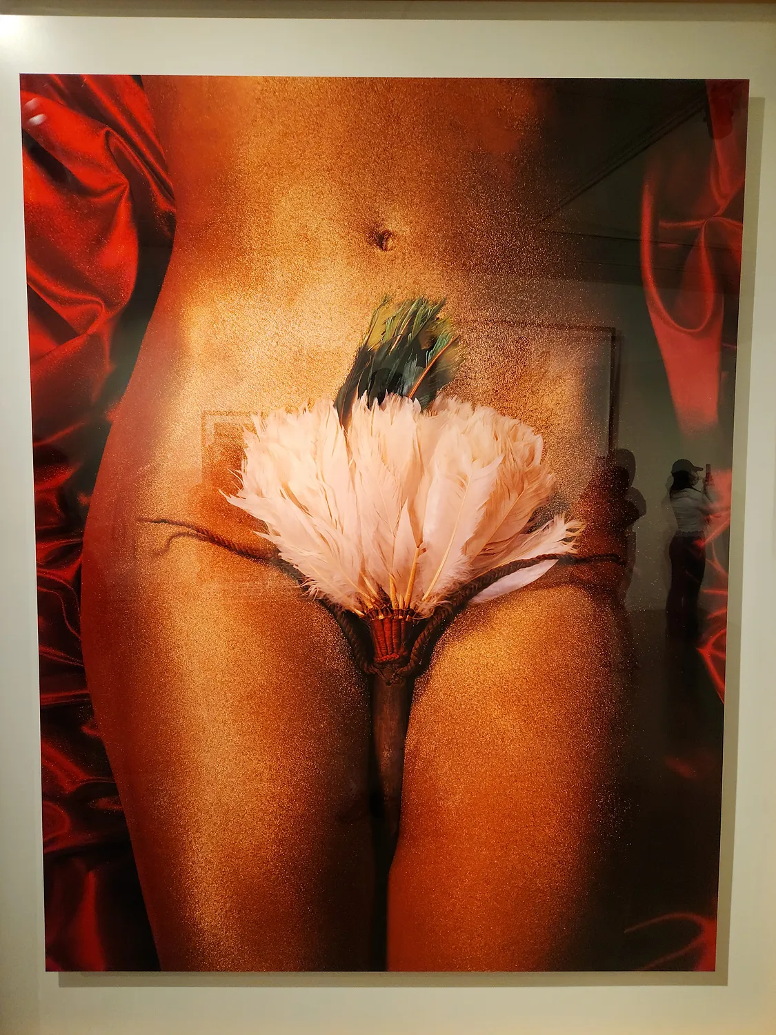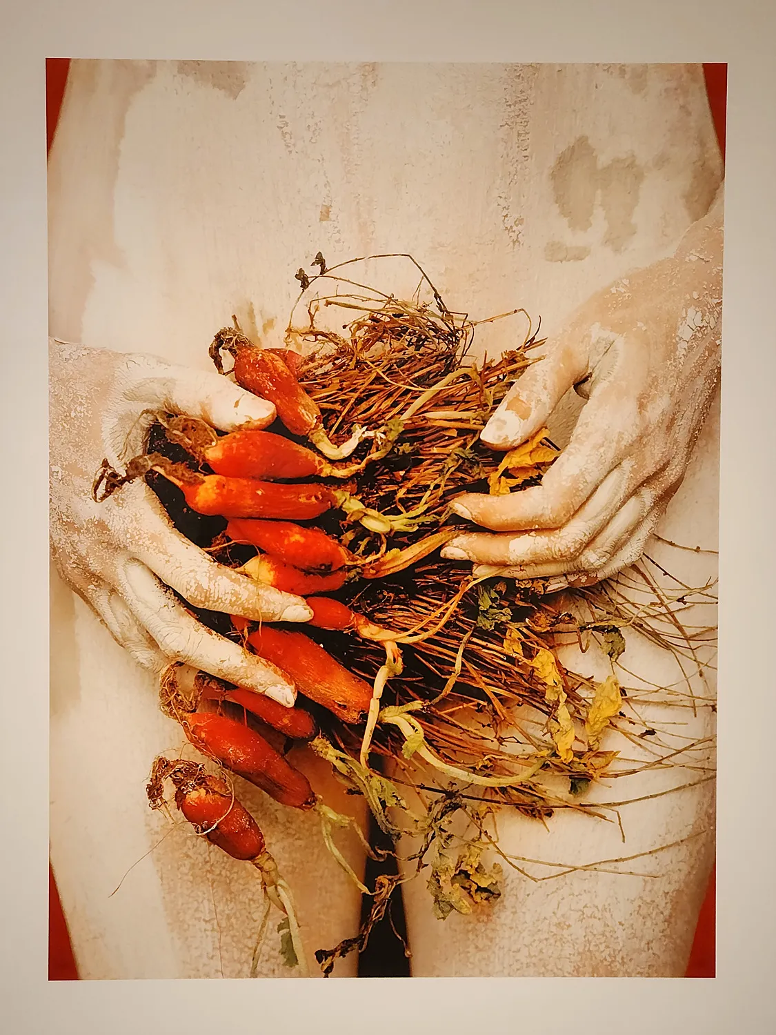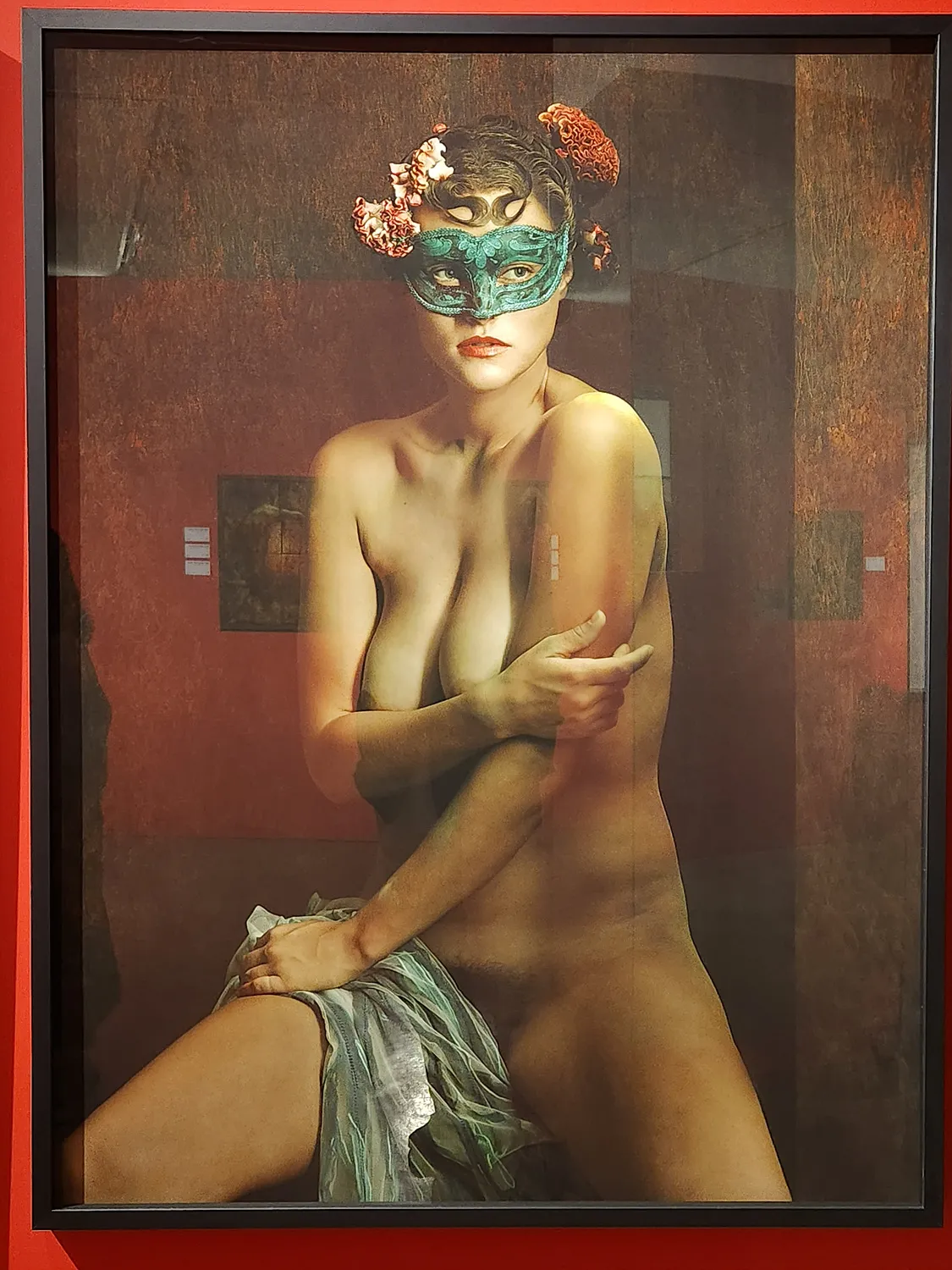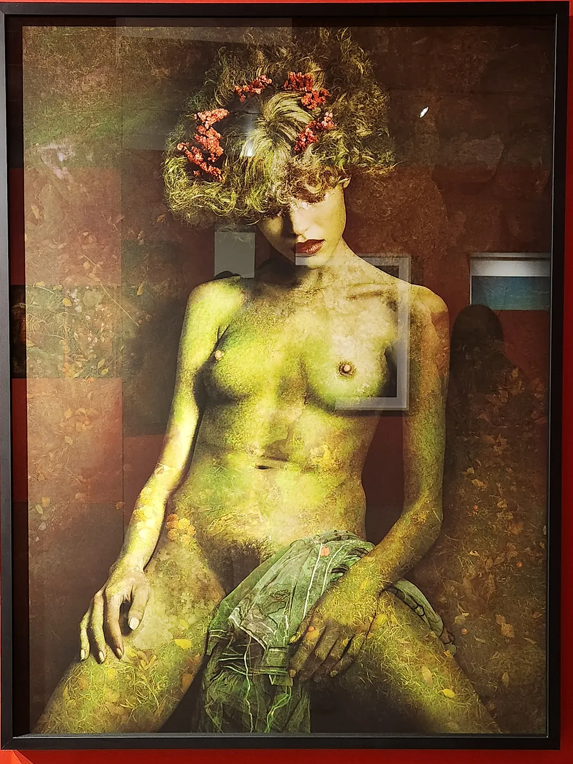 “모로코에서 모델 와리스 다리와 진행한 작업은 모든 것이 잘 갖춰진 스튜디오가 아닌 낯선 촬영 장소에서 본인이 준비해 온 것들을 활용해 찍은 것이다. 붉은 천에 백라이트를 설치한 뒤 색소가 가미된 식품으로 혀를 붉게 물들이고, 금색 종이를 말아 뿔을 만들었다. 이 사진은 디지털 이전 시대에 비싼 스튜디오나 화려한 조명, 값비싼 장치 장식 없어도 좋은 결과물을 만들어 낼 수 있다는 것을 보여준다.”