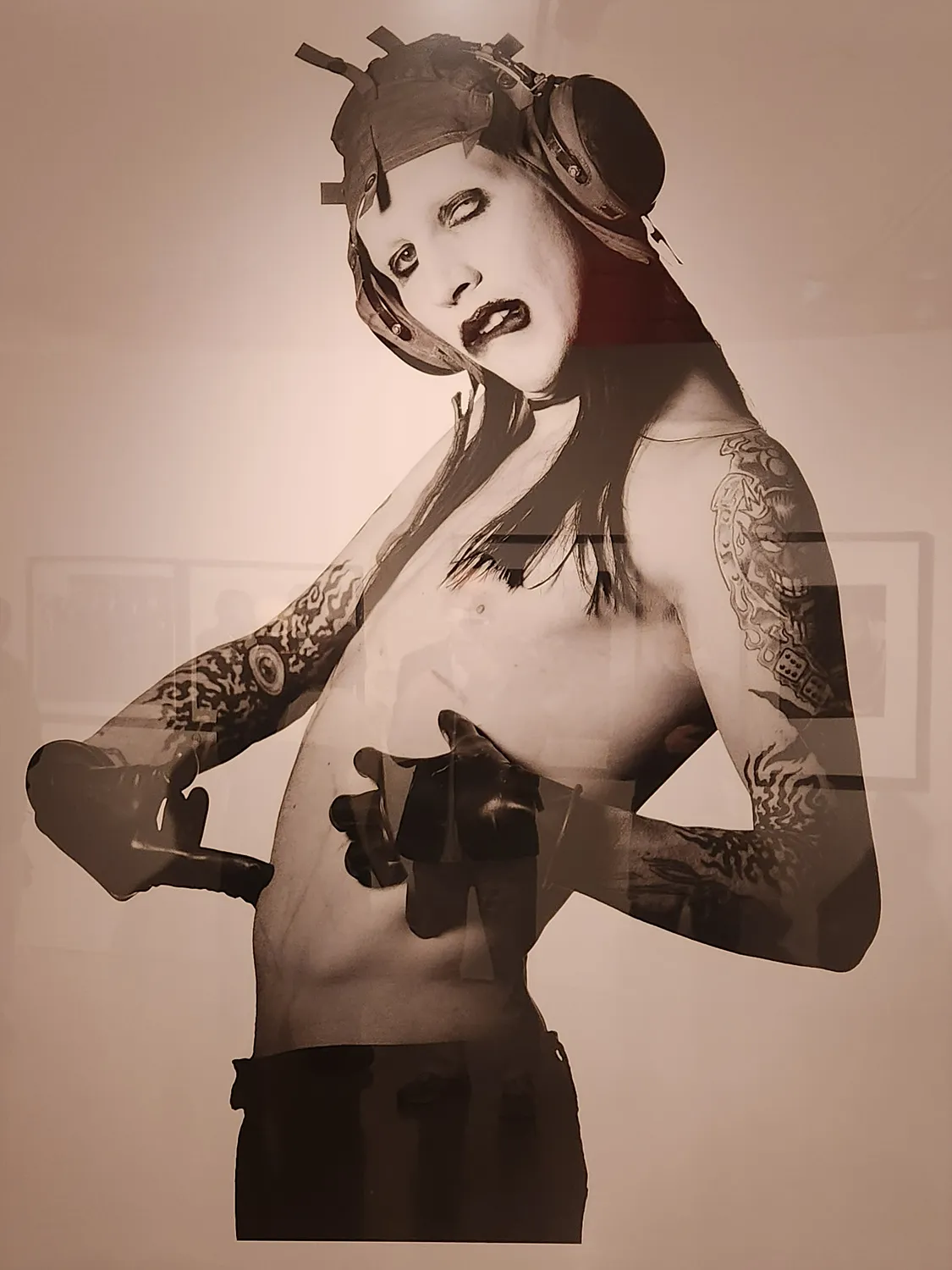 “이 사진을 촬영할 당시 앤디 워홀은 모델 에이전트 소속이었다. 원하면 그를 모델로 기용할 수 있는 상황에서 앤디 워홀이 제작한 ‘인터뷰’ 잡지 표지 촬영을 여러 번 진행한 알버트 왓슨은 멘즈 보그의 독일판 촬영을 진행했다. 촬영장에 도착한 앤디 워홀은 ‘터미네이터’의 포스터를 주머니에서 꺼내 보여주었다. 이 사진은 가죽재킷을 입고 안경을 쓰고 올려다보고 있는 영화 주인공 아놀드 슈워제네거처럼 보이기 원한 앤디 워홀의 아이디어로부터 탄생하였다.
