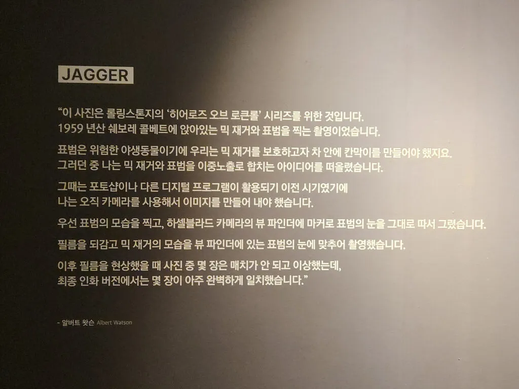 “알버트 왓슨은 롤링스톤지의 의뢰로 권투계의 떠오르는 신예 마이크 타이슨을 촬영하게 된다. 타이슨의 단단하고 튼튼한 목을 본 순간, “권투 선수의 힘은 목에서 나온다.”라고 프로 권투 선수였던 아버지가 한 말이 떠올랐다. 52cm 사이즈의 목에서 나오는 남성성을 강조하고자 알버트 왓슨은 타이슨의 운동하고 난 뒤 땀방울이 맺힌 그의 모습을 현장 촬영용 스토로브를 뒤에서 내리쬐게 해 촬영했다. 이 사진을 촬영하고 난 몇 달 뒤 마이크 타이슨은 20세의 나이로 최연소 WBC 헤비급 챔피언이 되었다.”