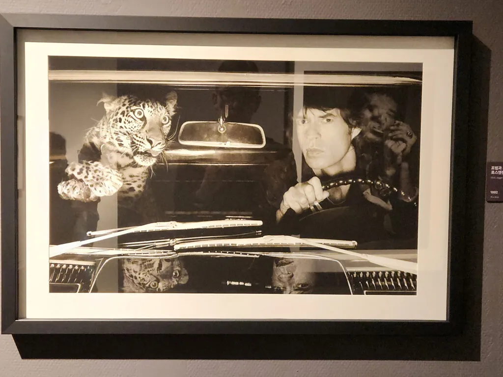 표범과 차에 앉아 있는 믹 재거, 로스앤젤레스, 1992