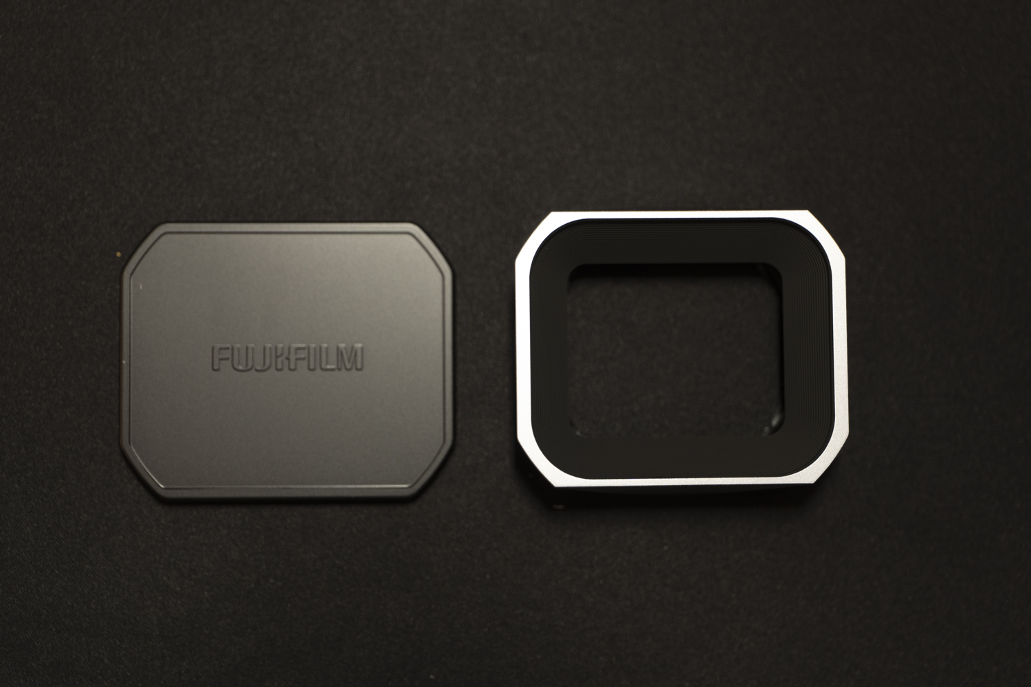 후드도 아주 퀄리티가 좋다. 아쉬운 점은 후드캡인데, 슬라이드 형태로 위에서 아래로 닫는 방식이다. 다른 후지 렌즈가 저런 형태인데, 고정력이 약해서 썩 좋아하지 않는다. 다른 후드캡이 나오면 좋겠다. 서드파티라도.
