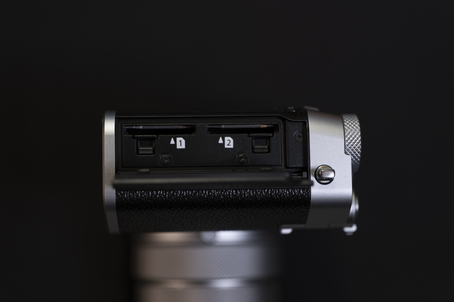 메모리카드 슬롯은 2개를 지원하는데, CFexpress를 지원하지 않는게 아쉽다. 중형 특성상 파일 용량이 큰만큼 속도도 중요하다.