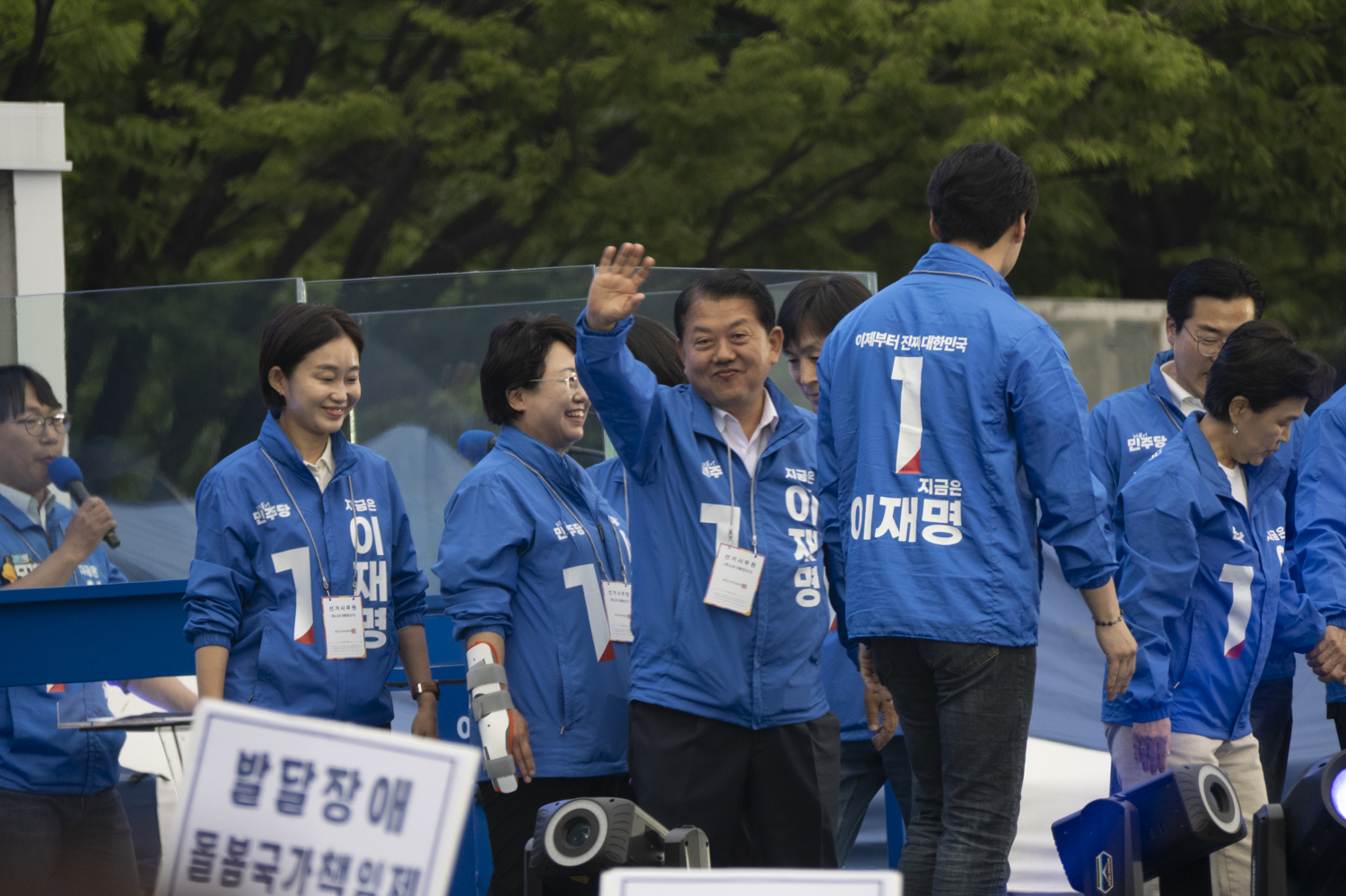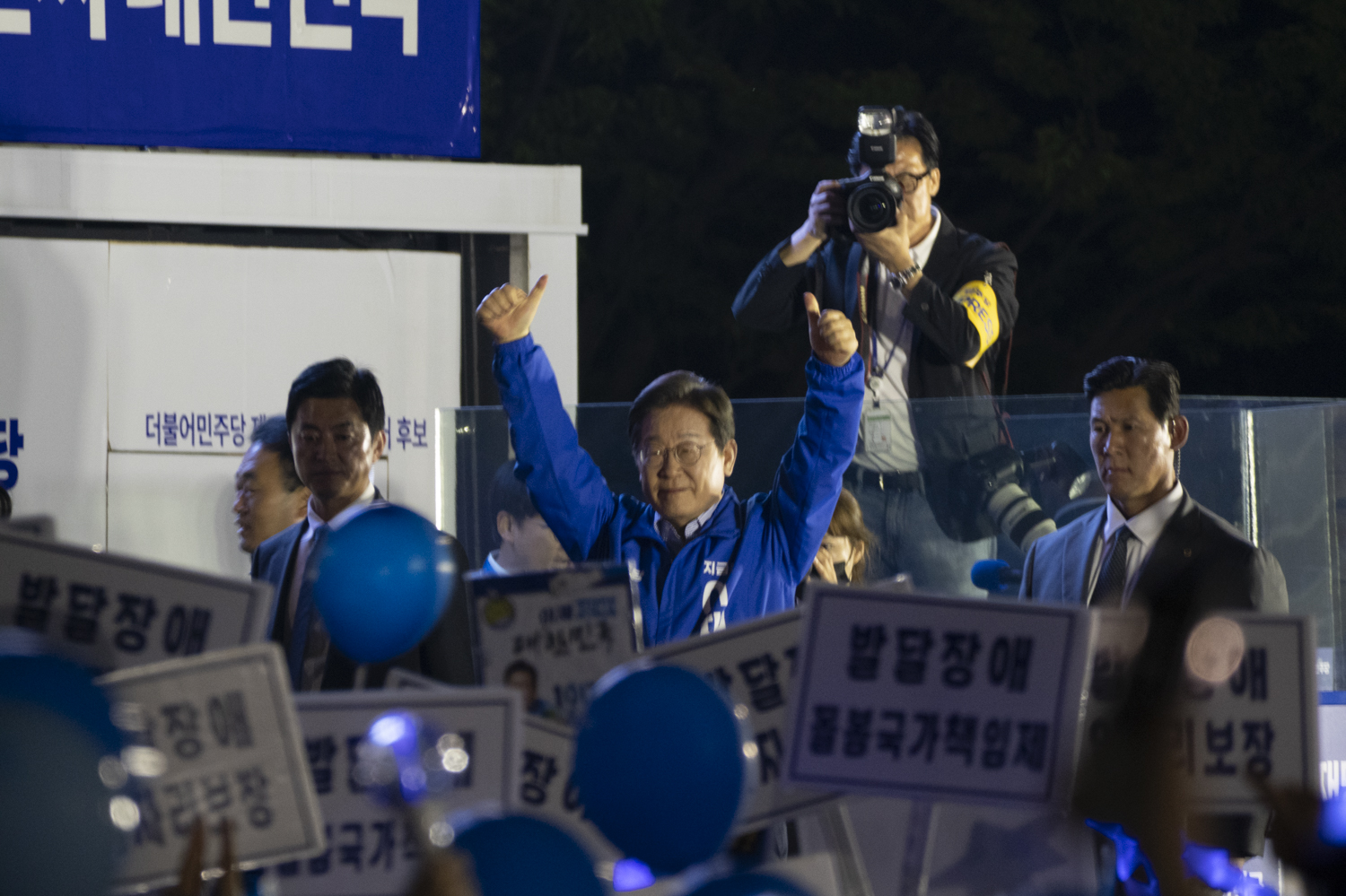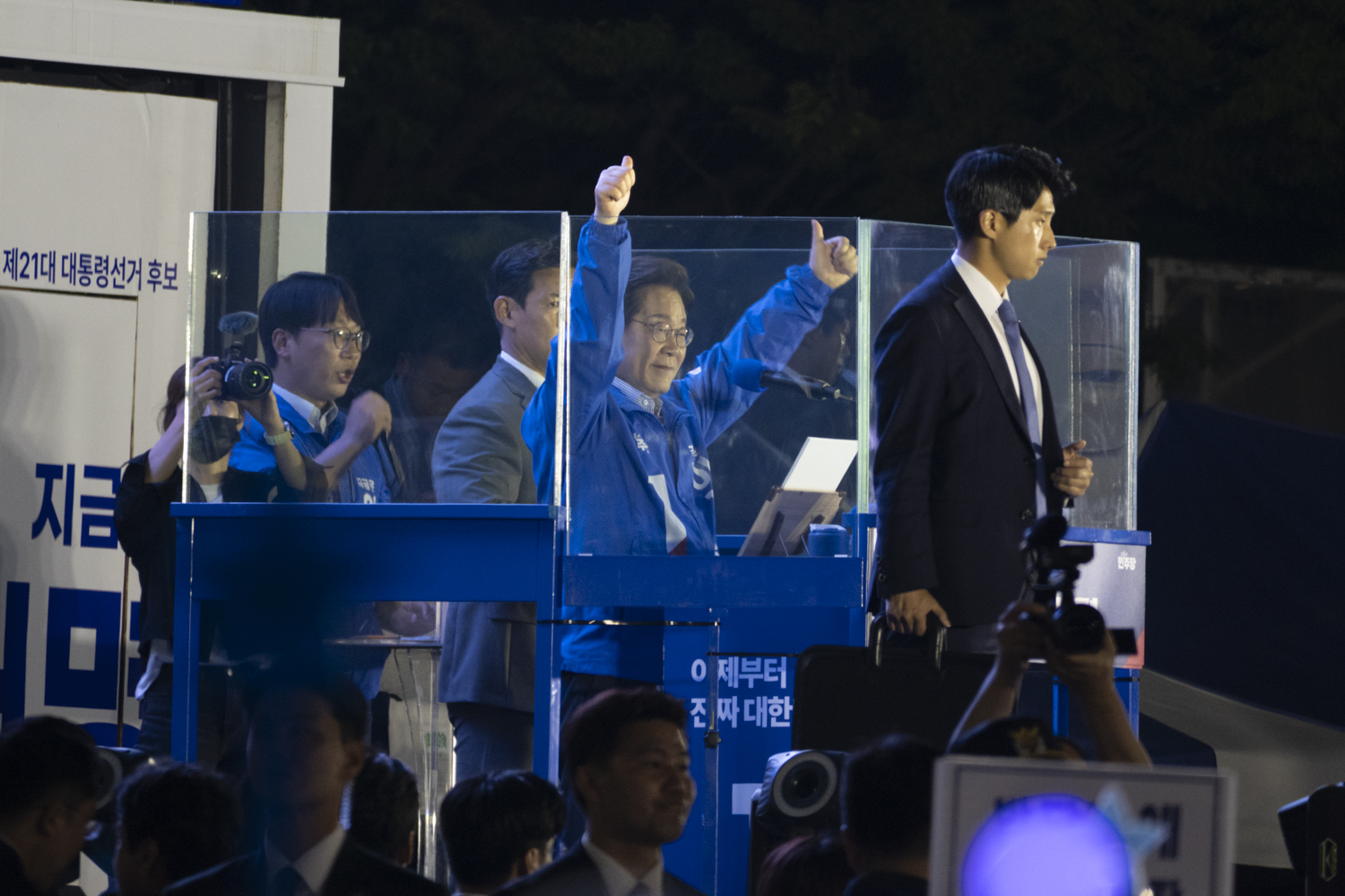 민주당 대통령 후보 이재명의 마지막 여의도 유세