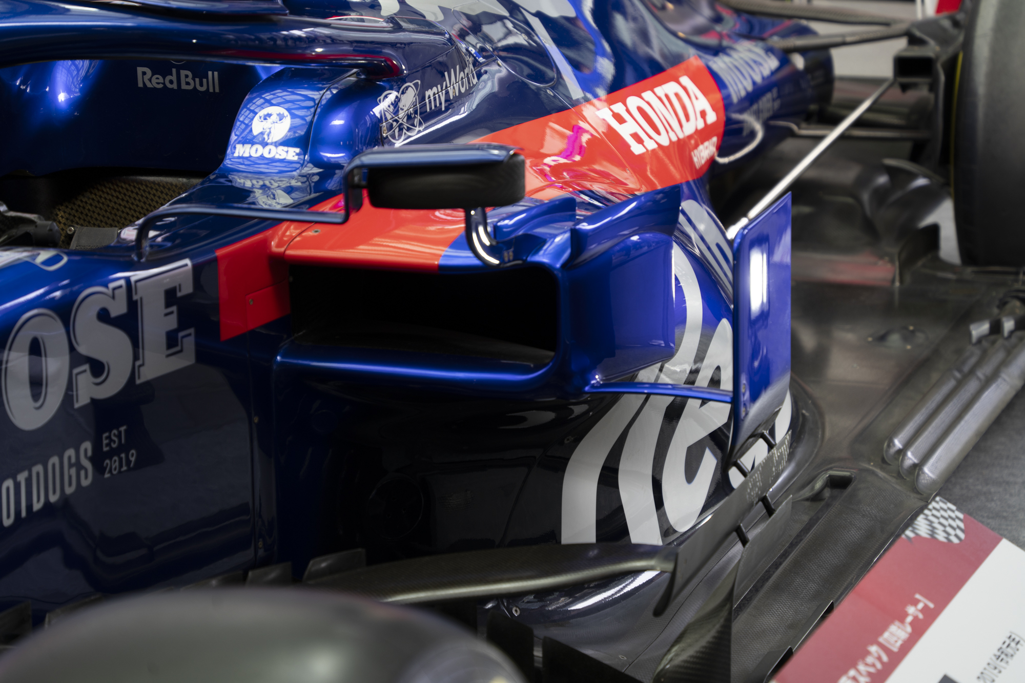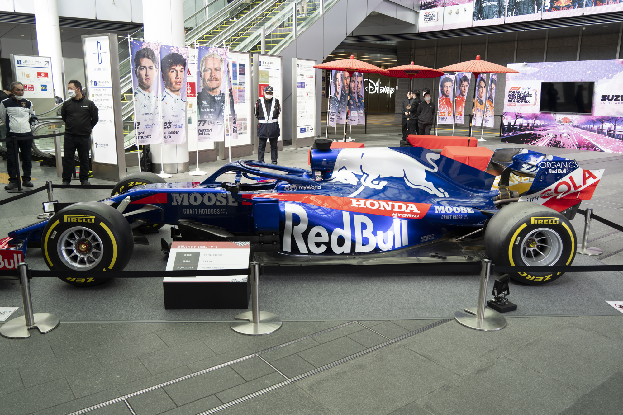 나고야 역에서 F1 그랑프로 홍보 이벤트로 레이싱 불스의 차량이 전시되어 있다. 이렇게 가까이 보게 될 줄이야. 관심없는 사람이라도 지나차다 한 번은 눈길이 가게 되는 비주얼이다. 잠시 후 스즈카에 가서도 실물로 볼 예정임에도 꼼꼼히 살펴보았다. 중계에서만 보던 차량의 모습은 아름다움 그 자체다. 작지만 큰 이 차에 다양하고 엄청난 기술력이 모여진 오브젝트다.
