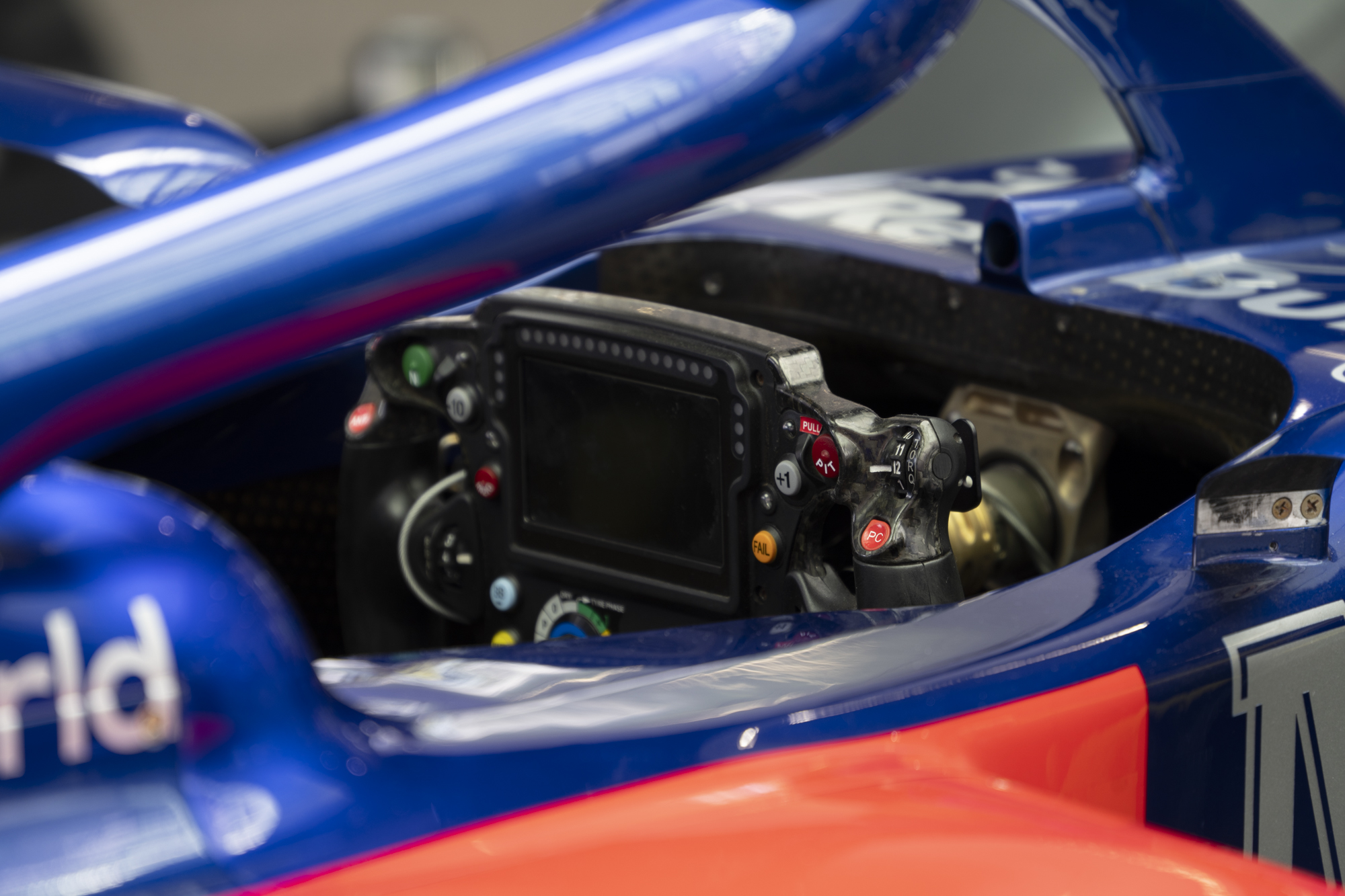 스티어링 휠!. 수많은 버튼가 레버가 있다. 저것 하나만 해도 억대라는 말이 있을 정도. 화면에서는 다양한 정보를 제공해 준다.