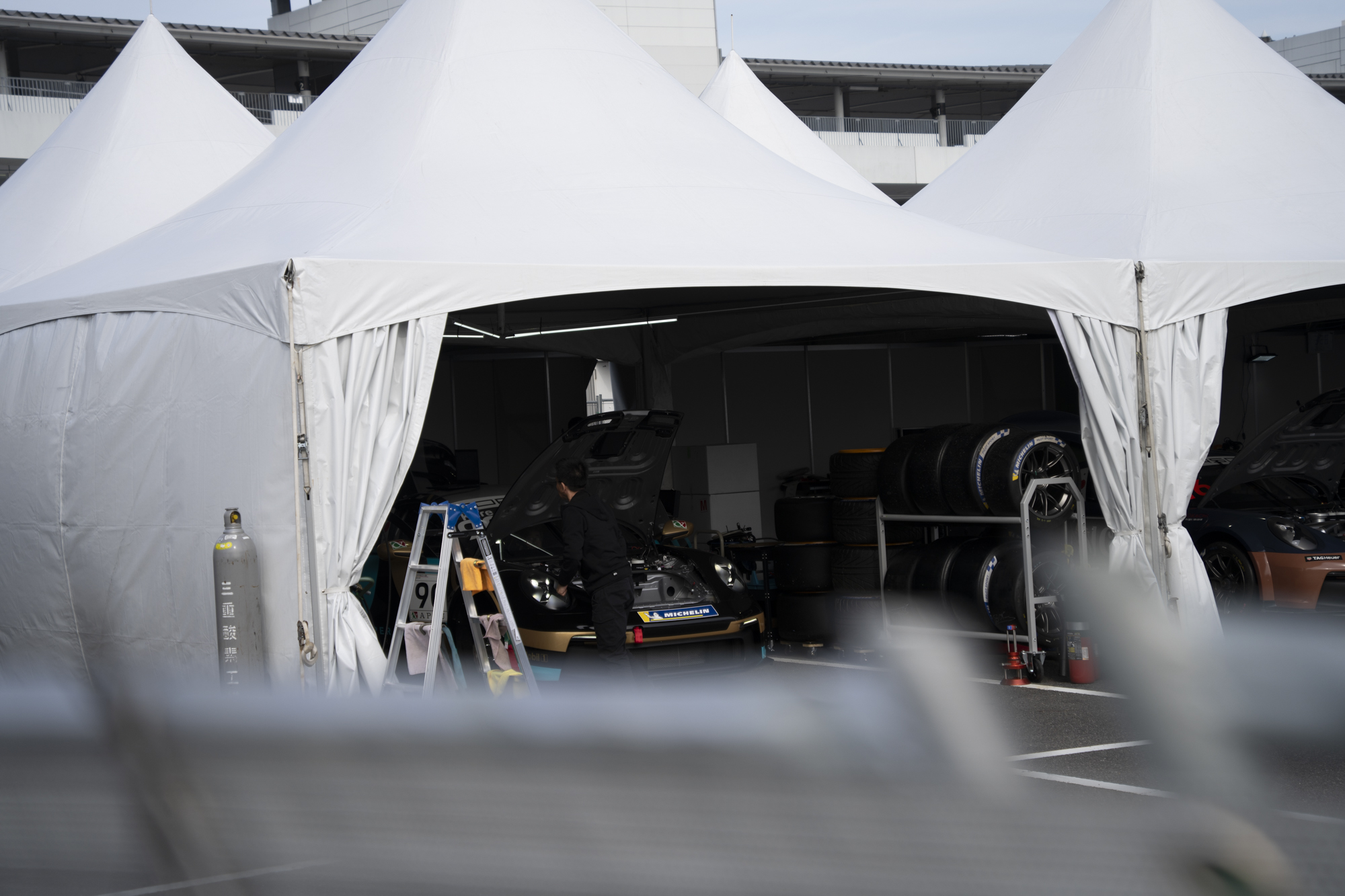 그랑프리에 따라 다르지만 스즈카에서는 서브 이벤트 레이스도 펼쳐진다. 그 차량들의 개러지.