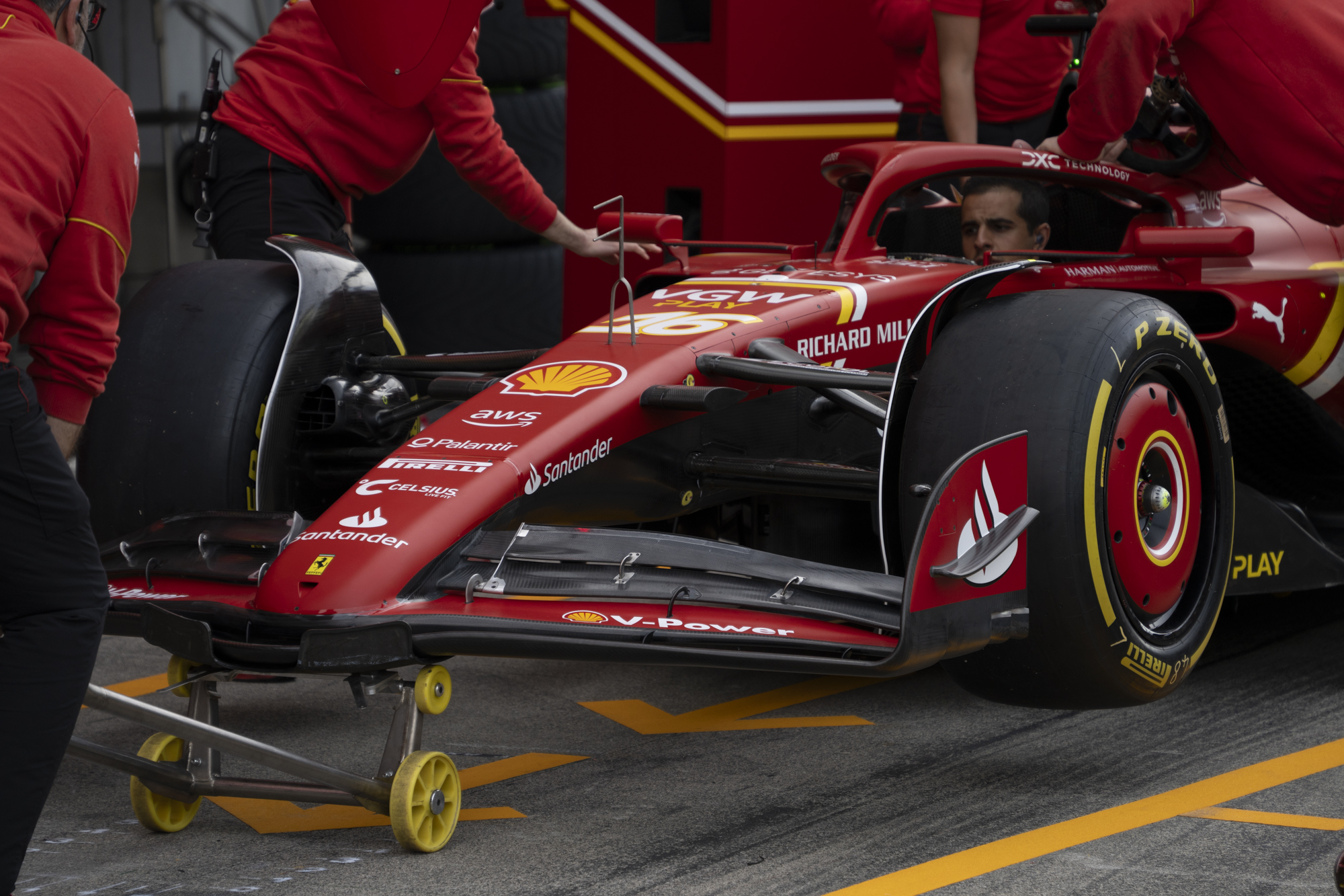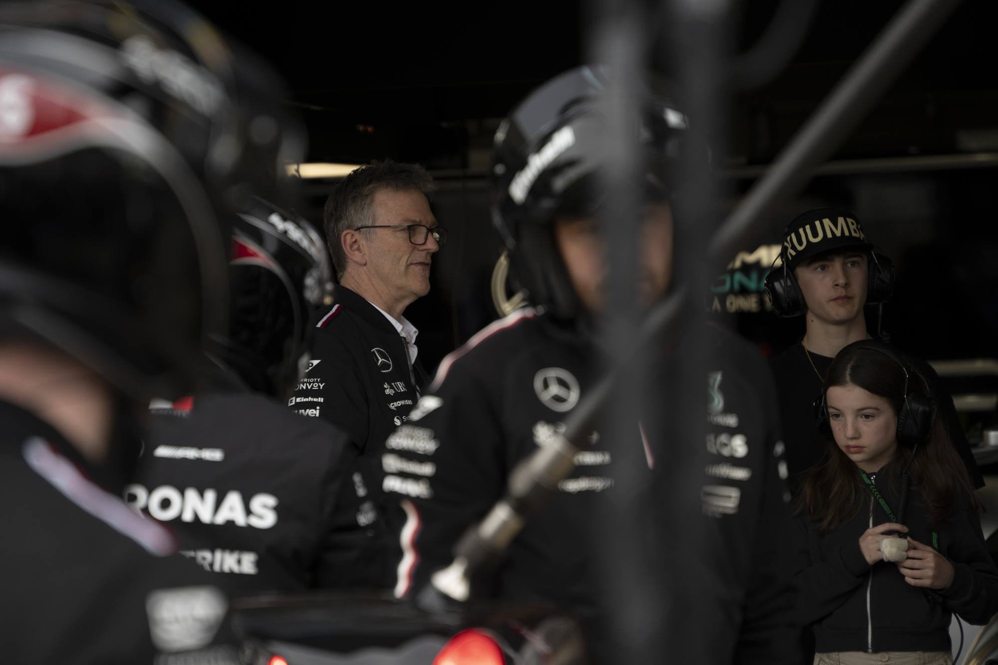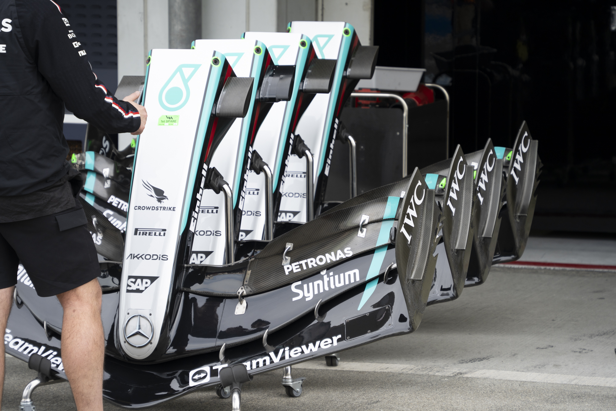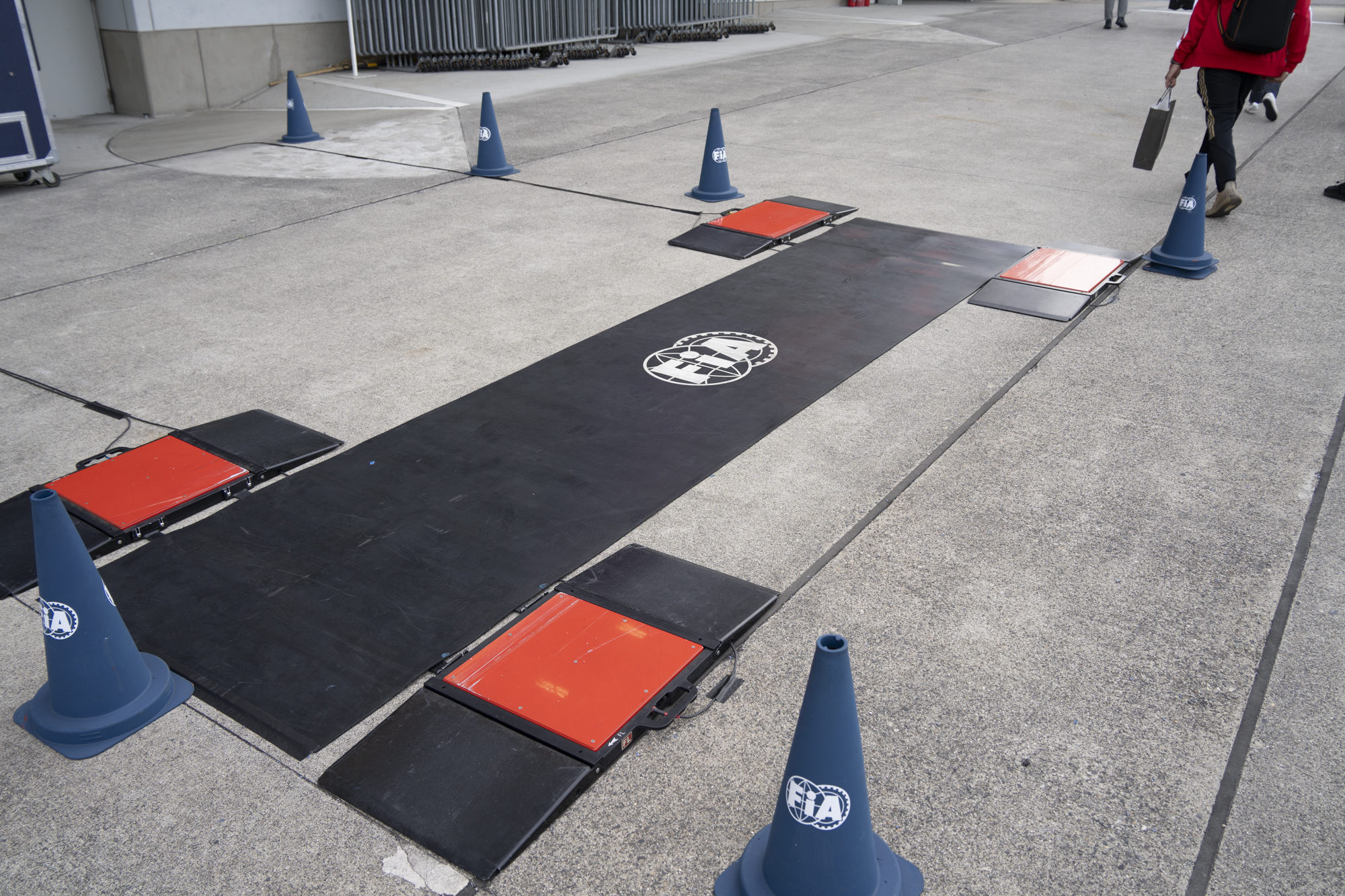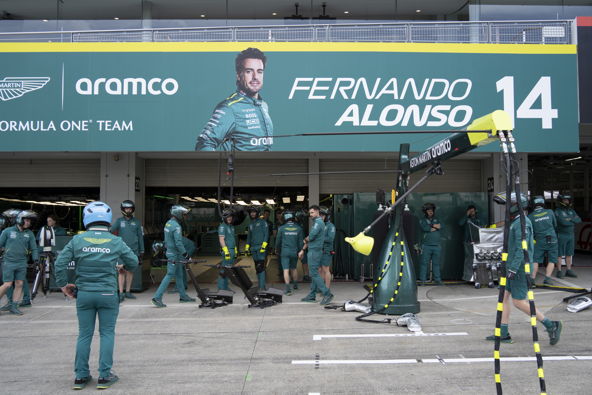 세이프티카와 하스팀의 핏크루들이 관람객들에게 보여줄 겸 연습 겸 타이어 교체를 하기 위해 대기하고 있다.