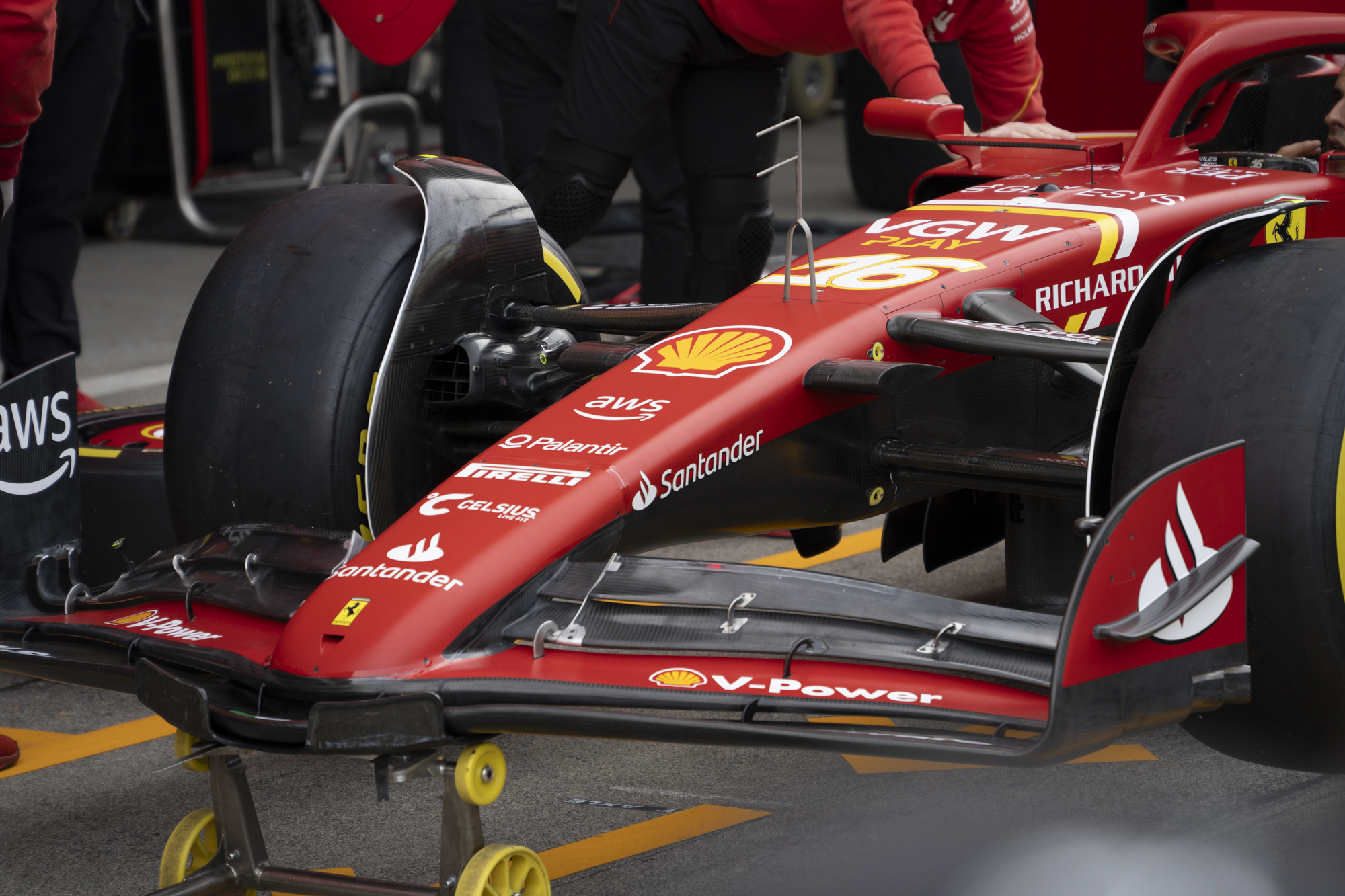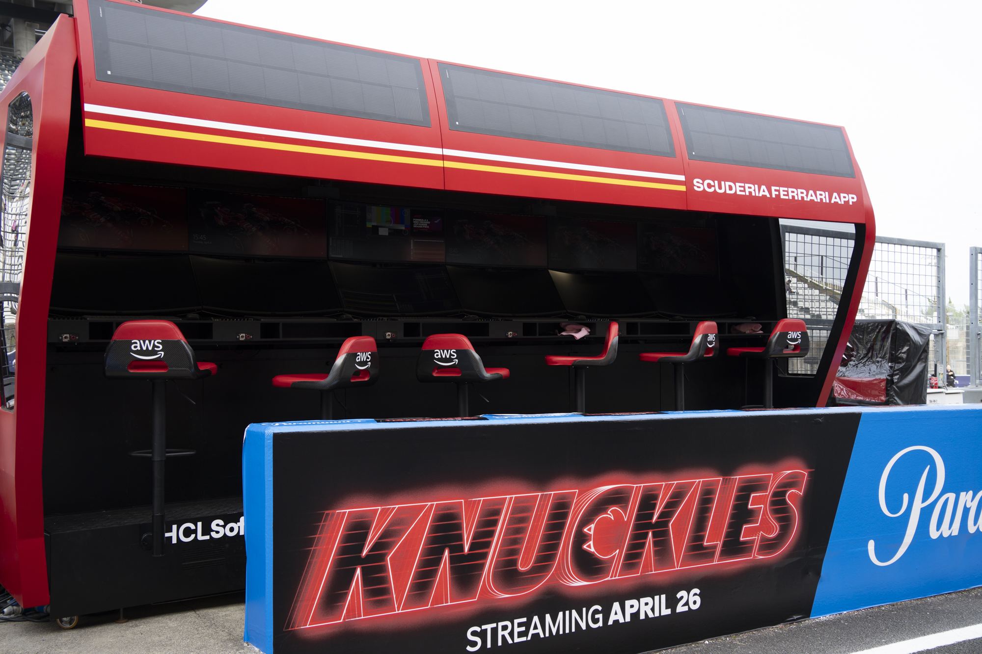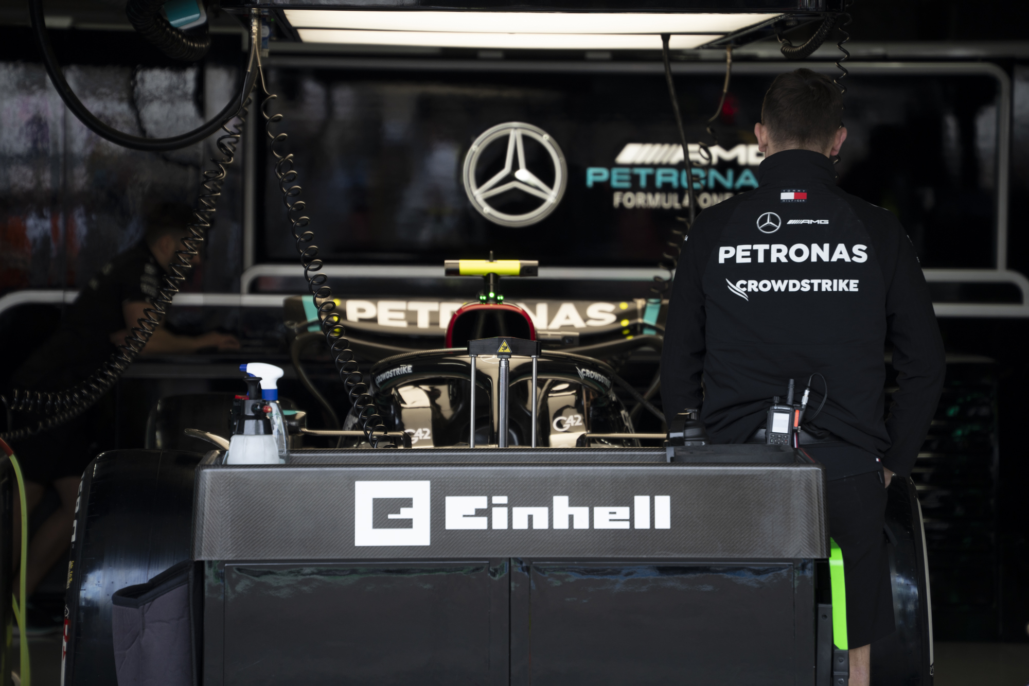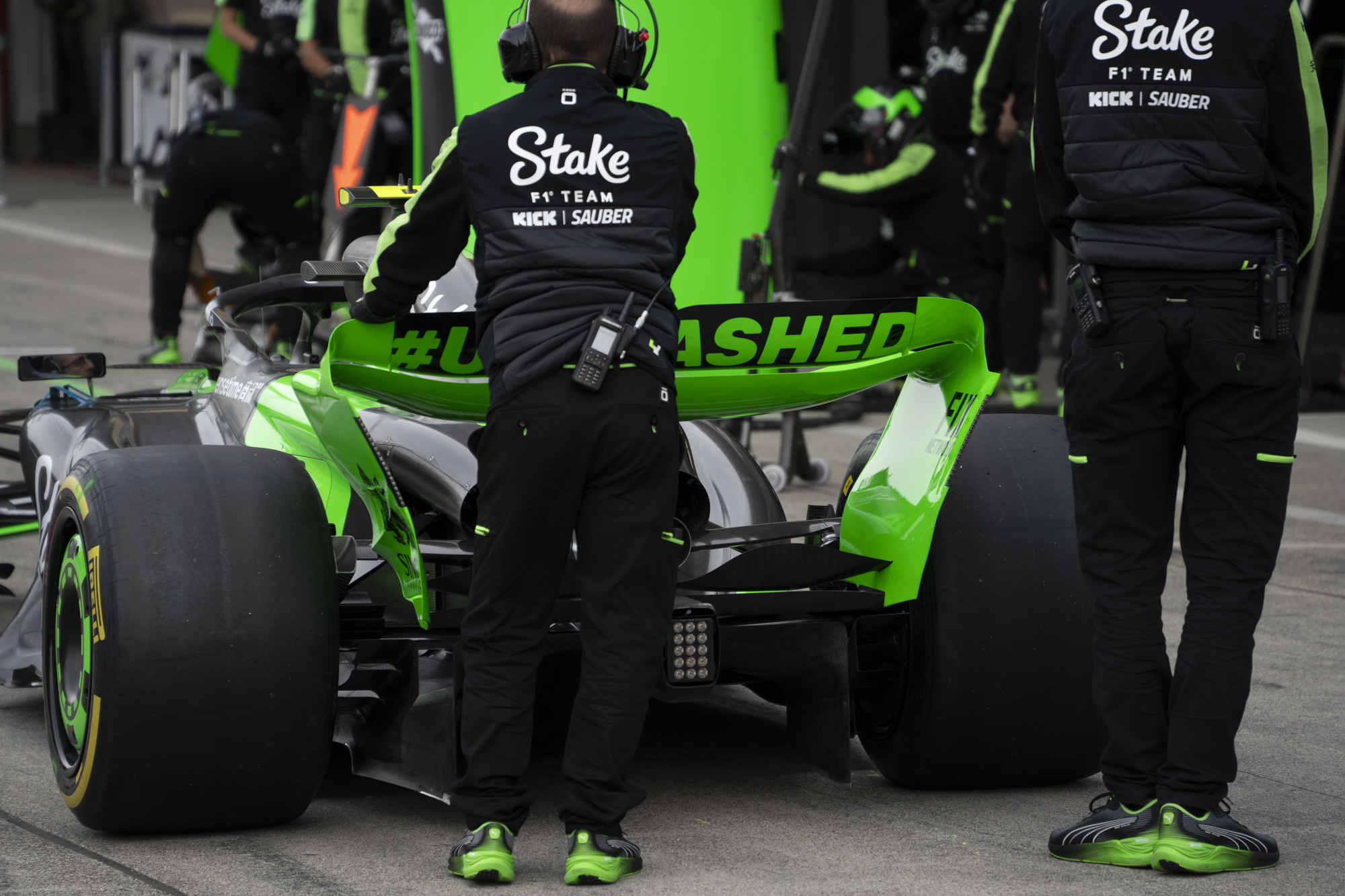 세이프티카와 하스팀의 핏크루들이 관람객들에게 보여줄 겸 연습 겸 타이어 교체를 하기 위해 대기하고 있다.