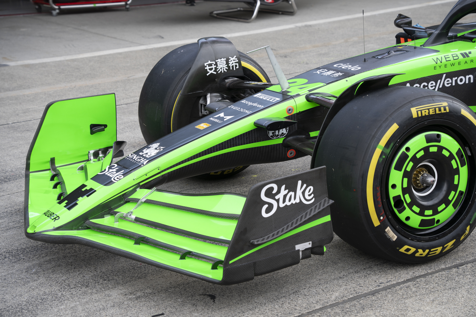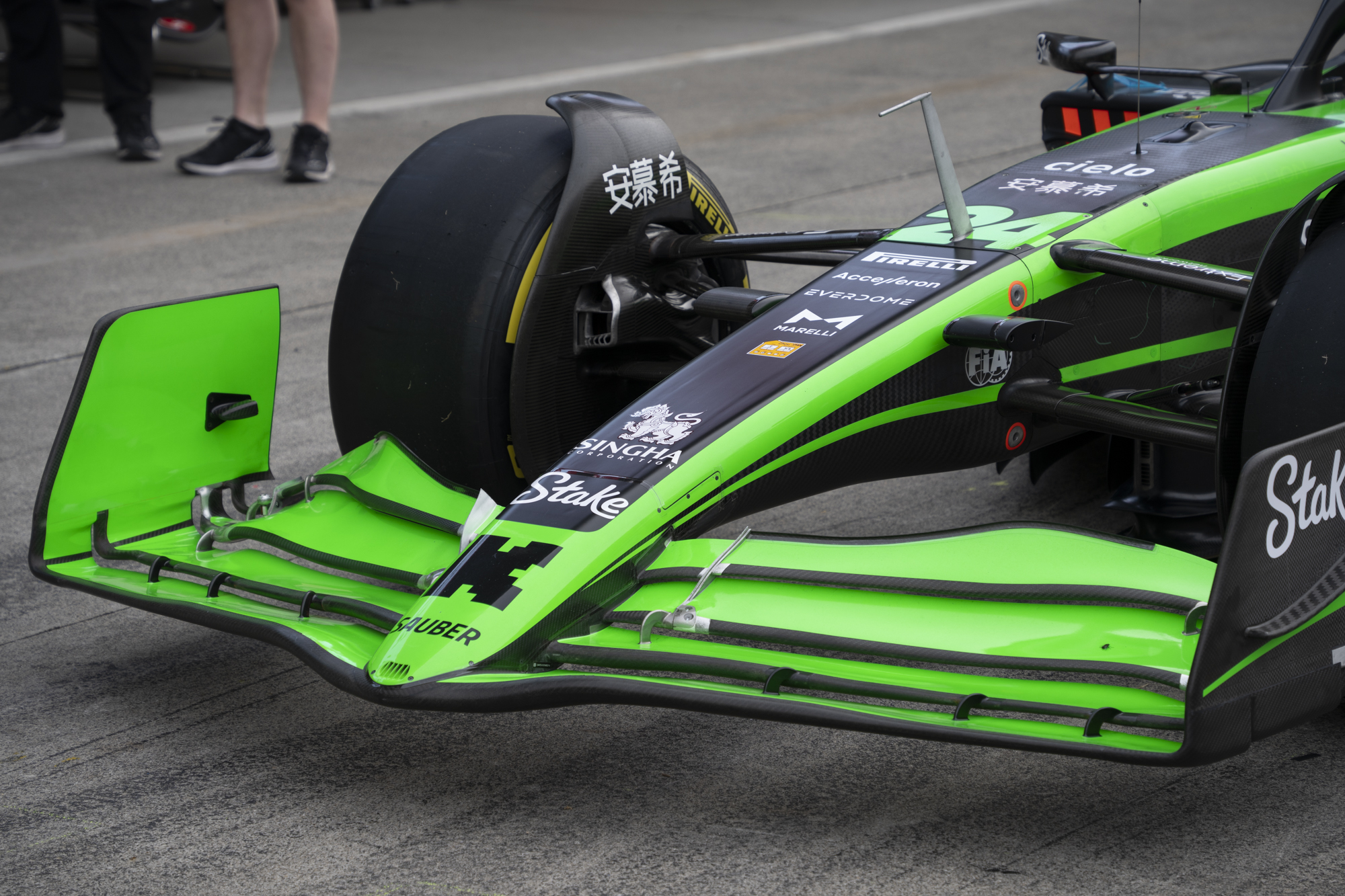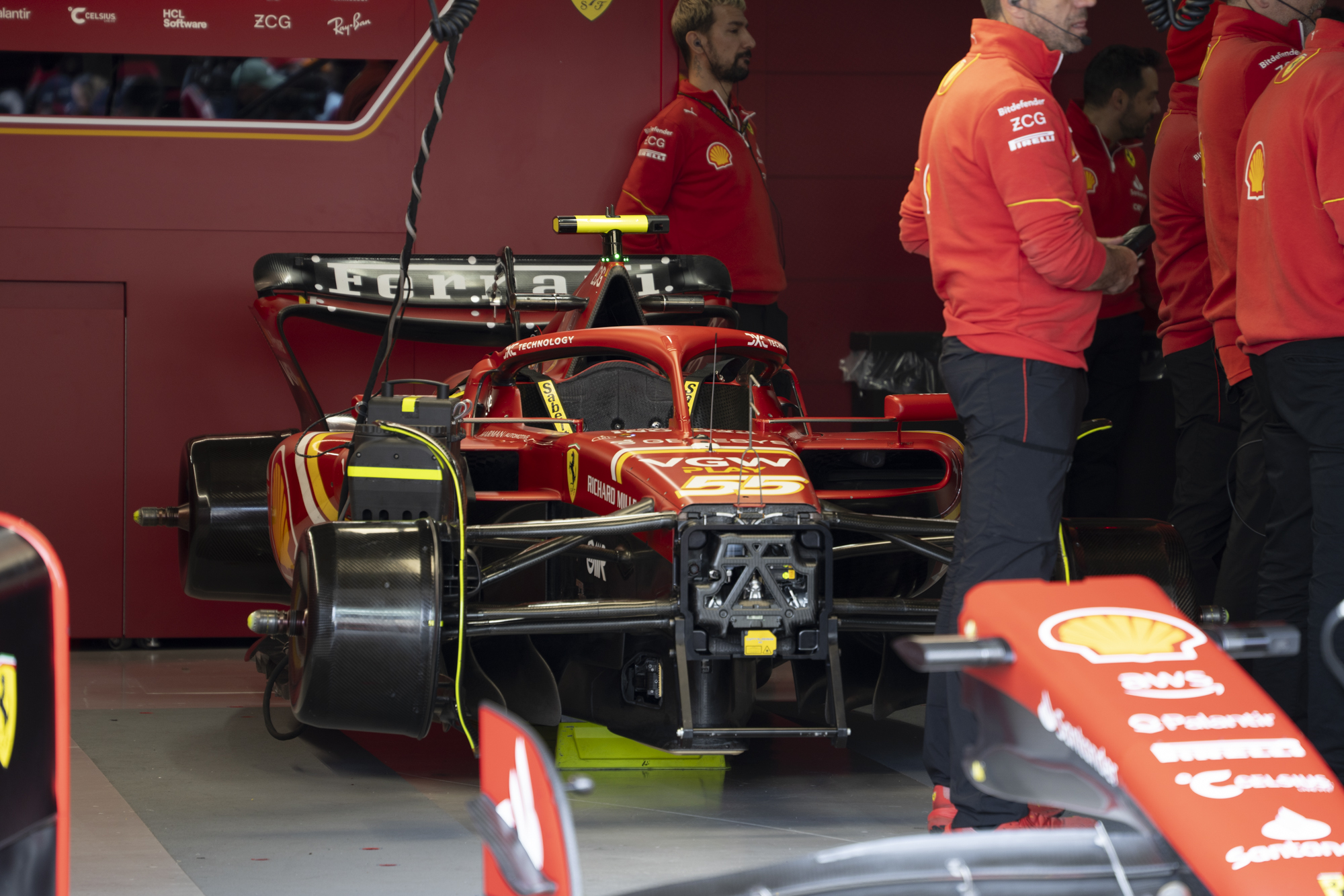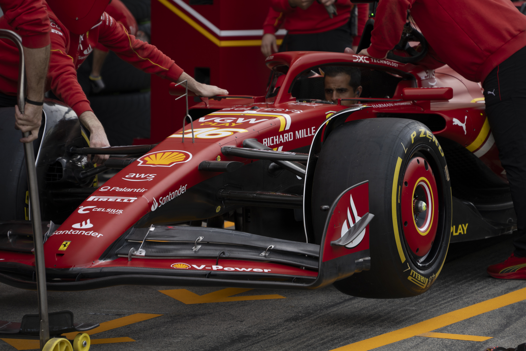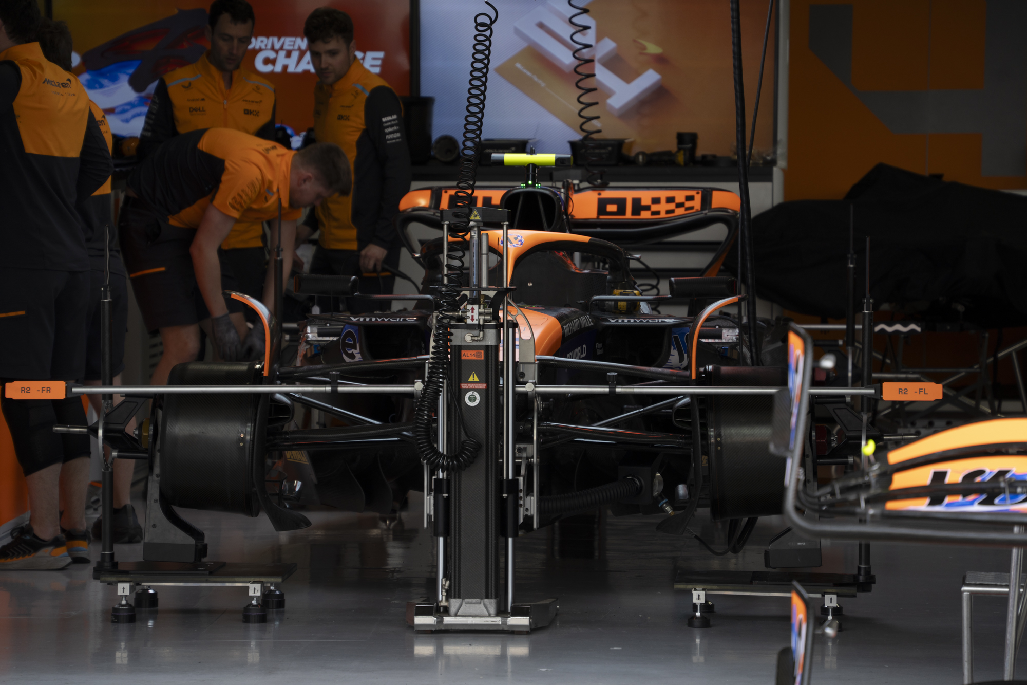 세이프티카와 하스팀의 핏크루들이 관람객들에게 보여줄 겸 연습 겸 타이어 교체를 하기 위해 대기하고 있다.