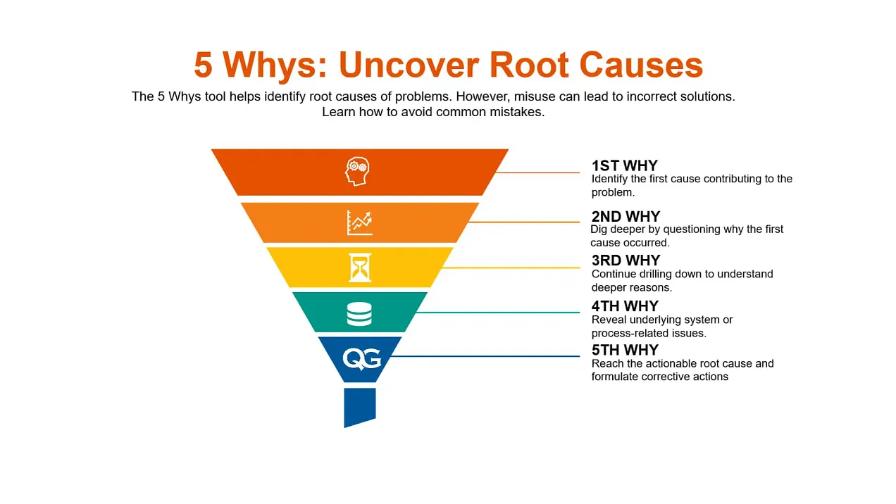 Why(왜): “5 Whys(5가지 왜)” 기법을 사용하여 근본적인 원인을 파헤치십시오.