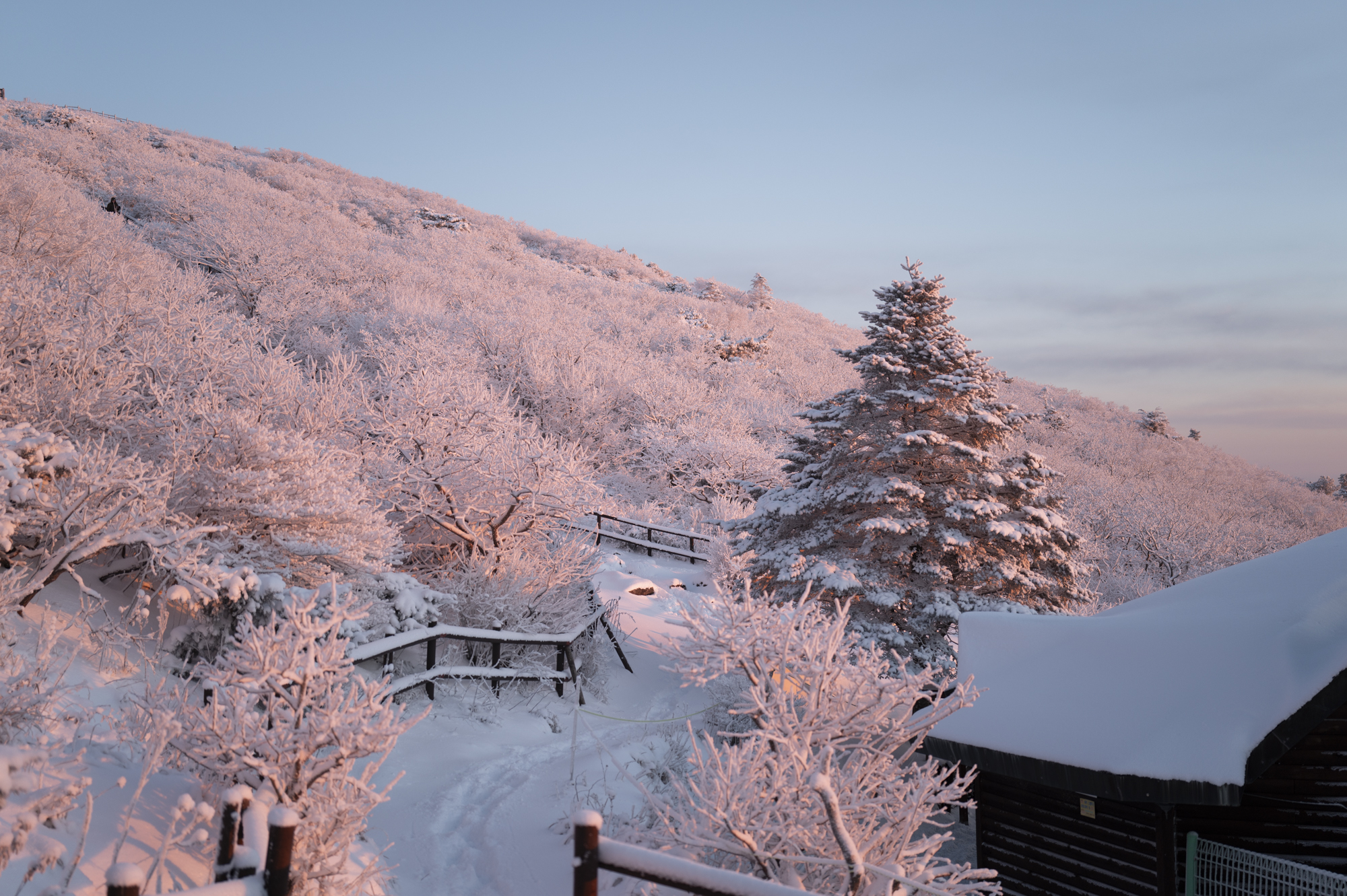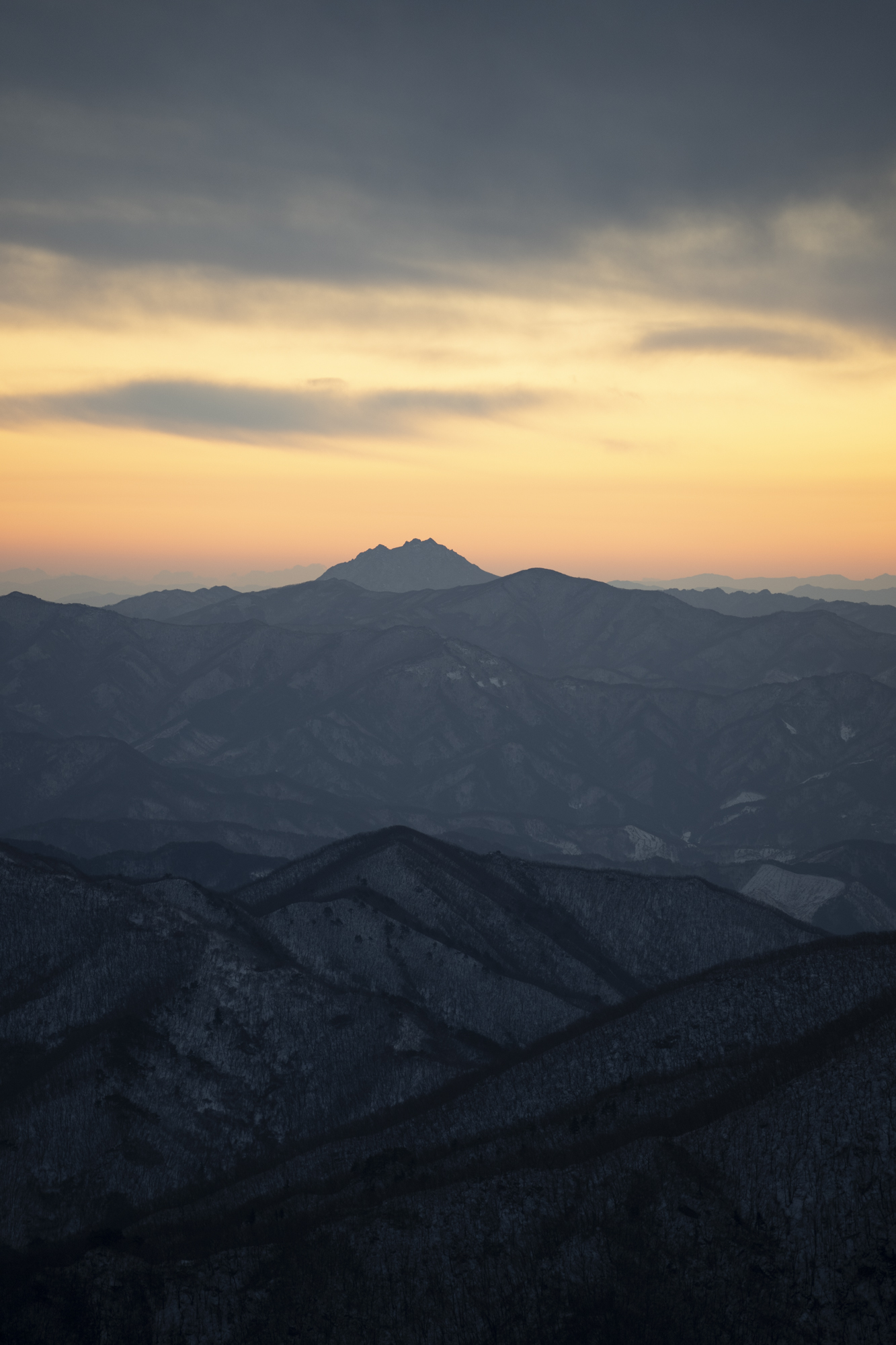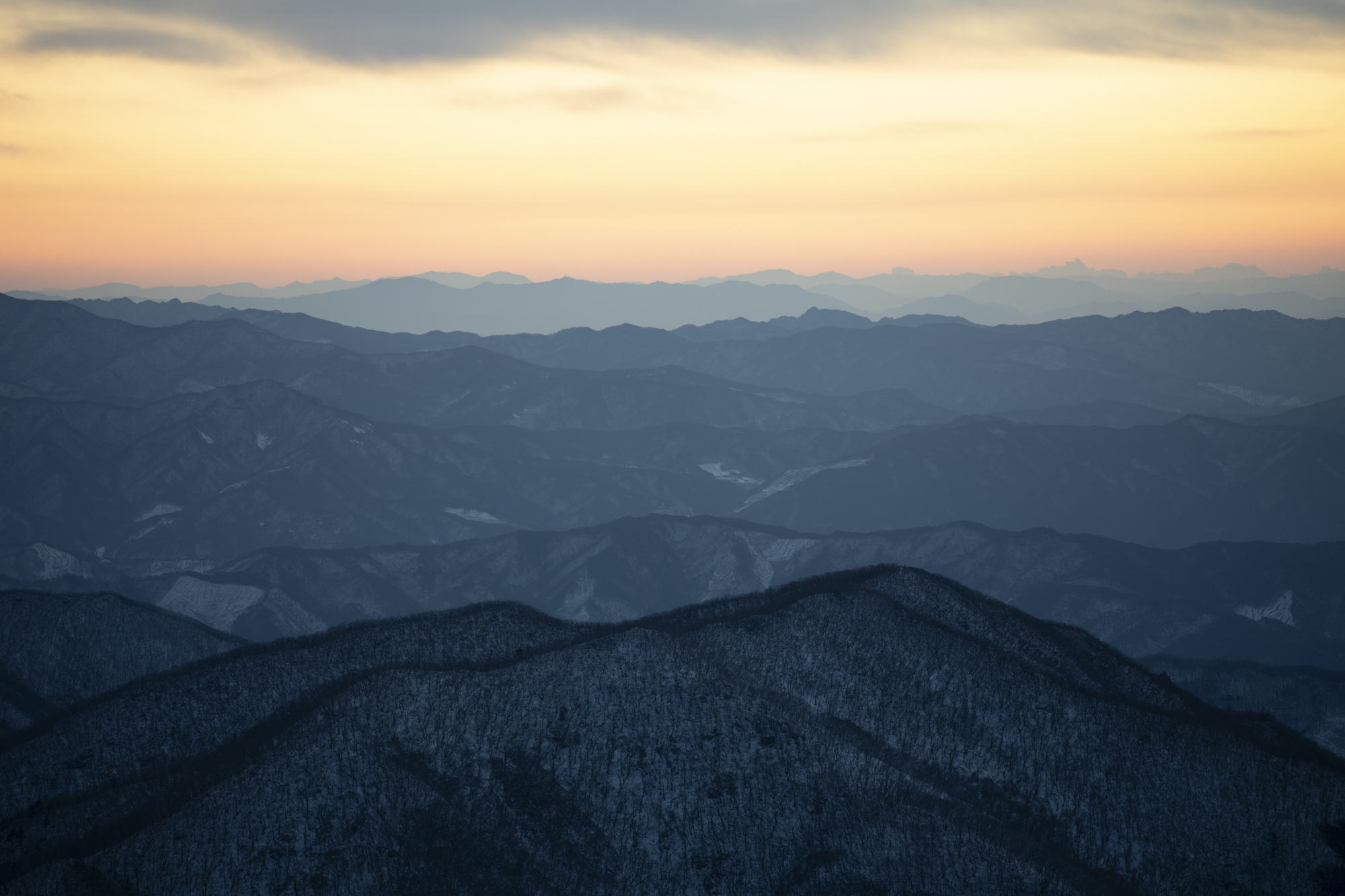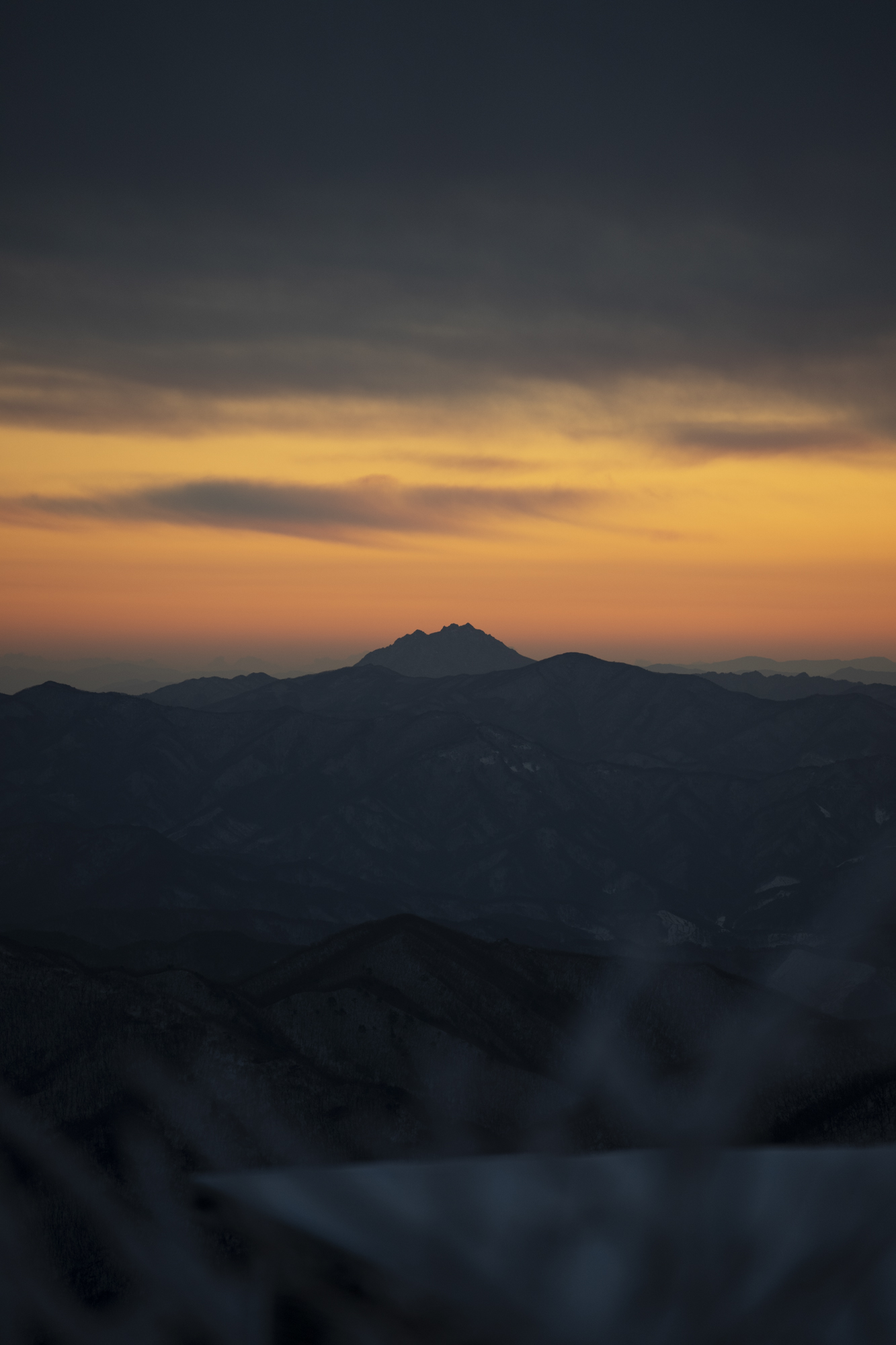 식사를 마친 후 소등 전에 잠깐 산책을 했다. 흐린 날이라 별 하나 보이지 않았지만, 투명하게 남은 일몰의 빛으로 덕유산의 멋진 풍광을 조금이나마 볼 수 있었다. 부디 내일은 좋은 날씨로 이곳까지 보람이 있기를 기도하며 잠을 청했다.