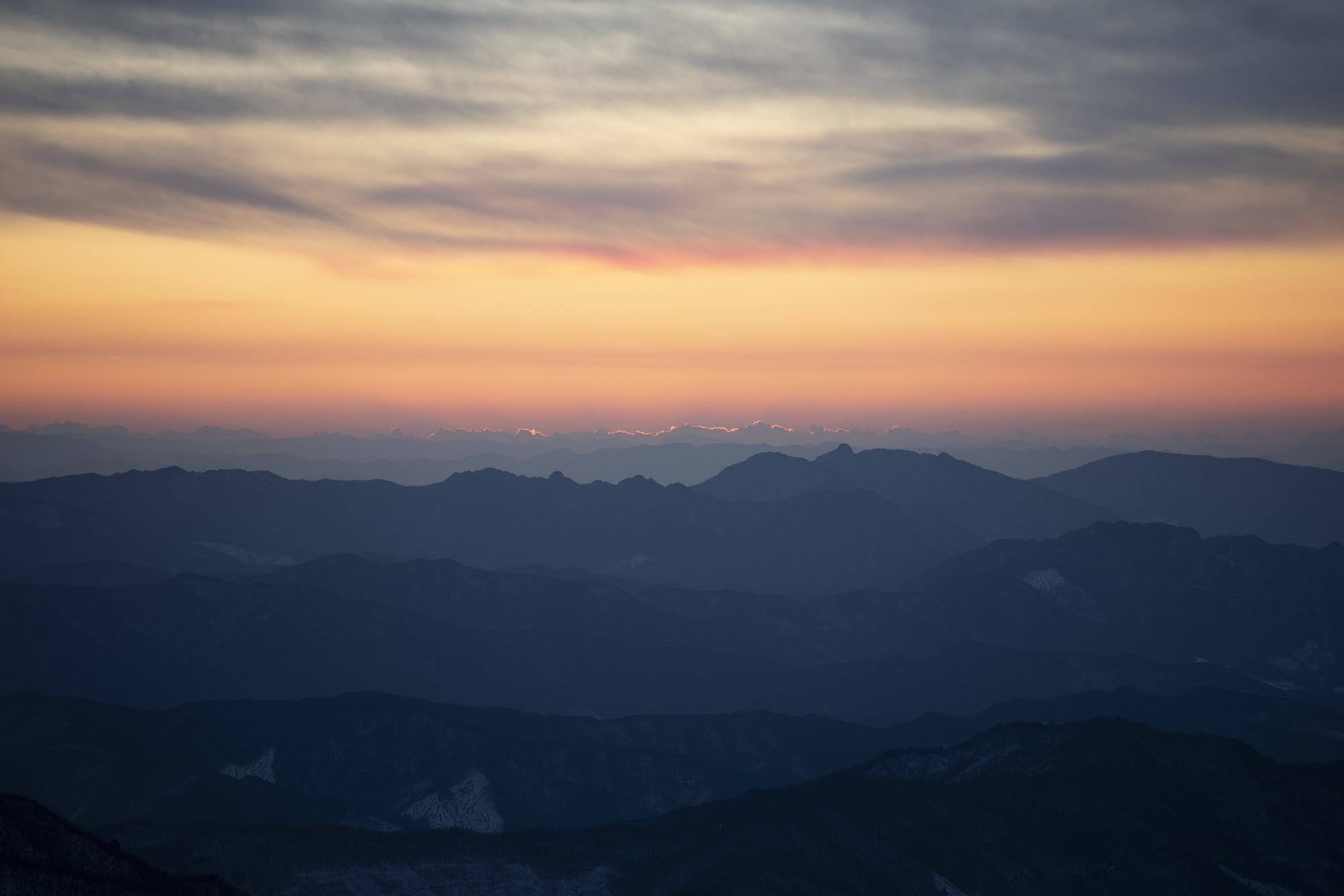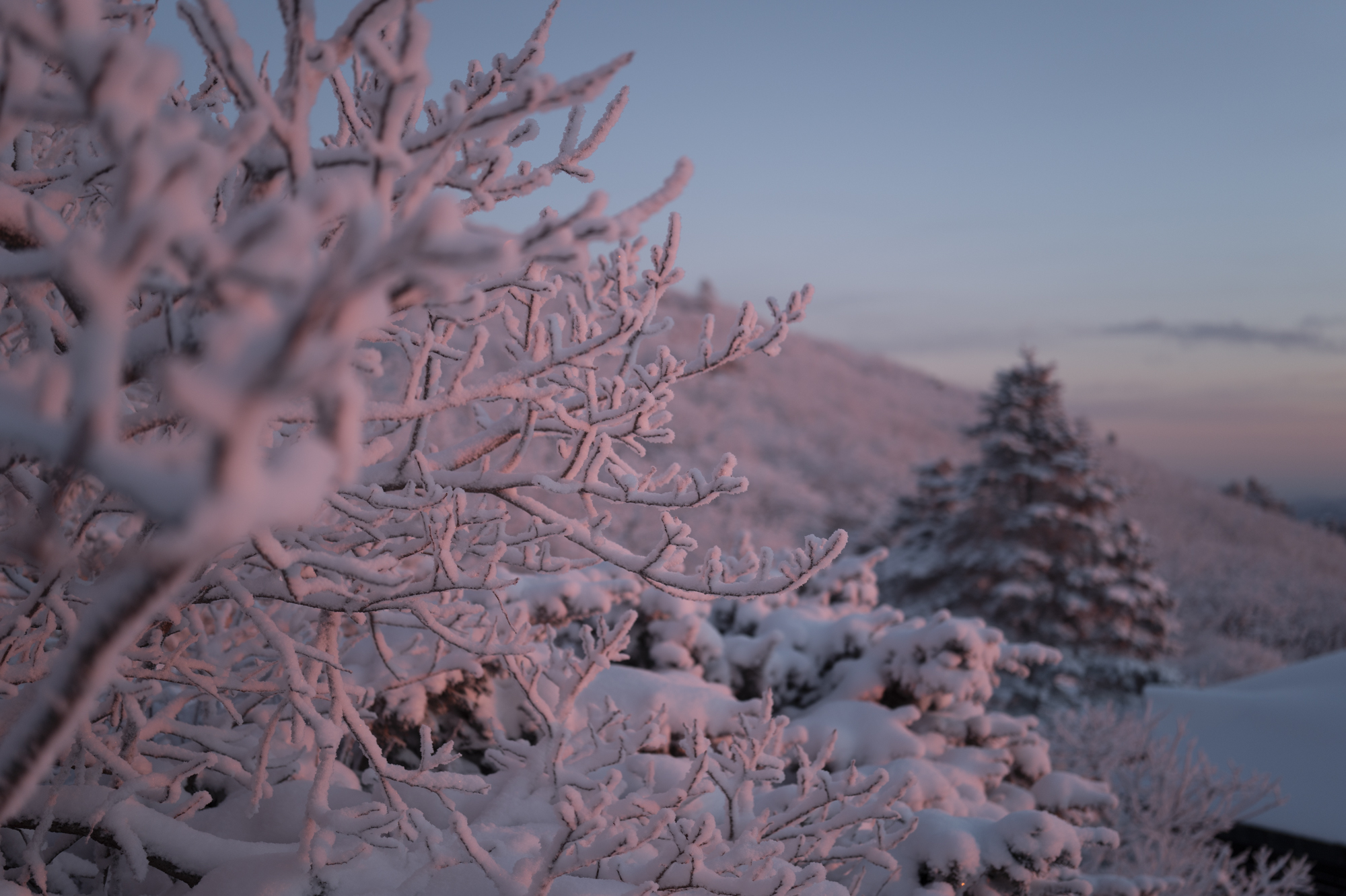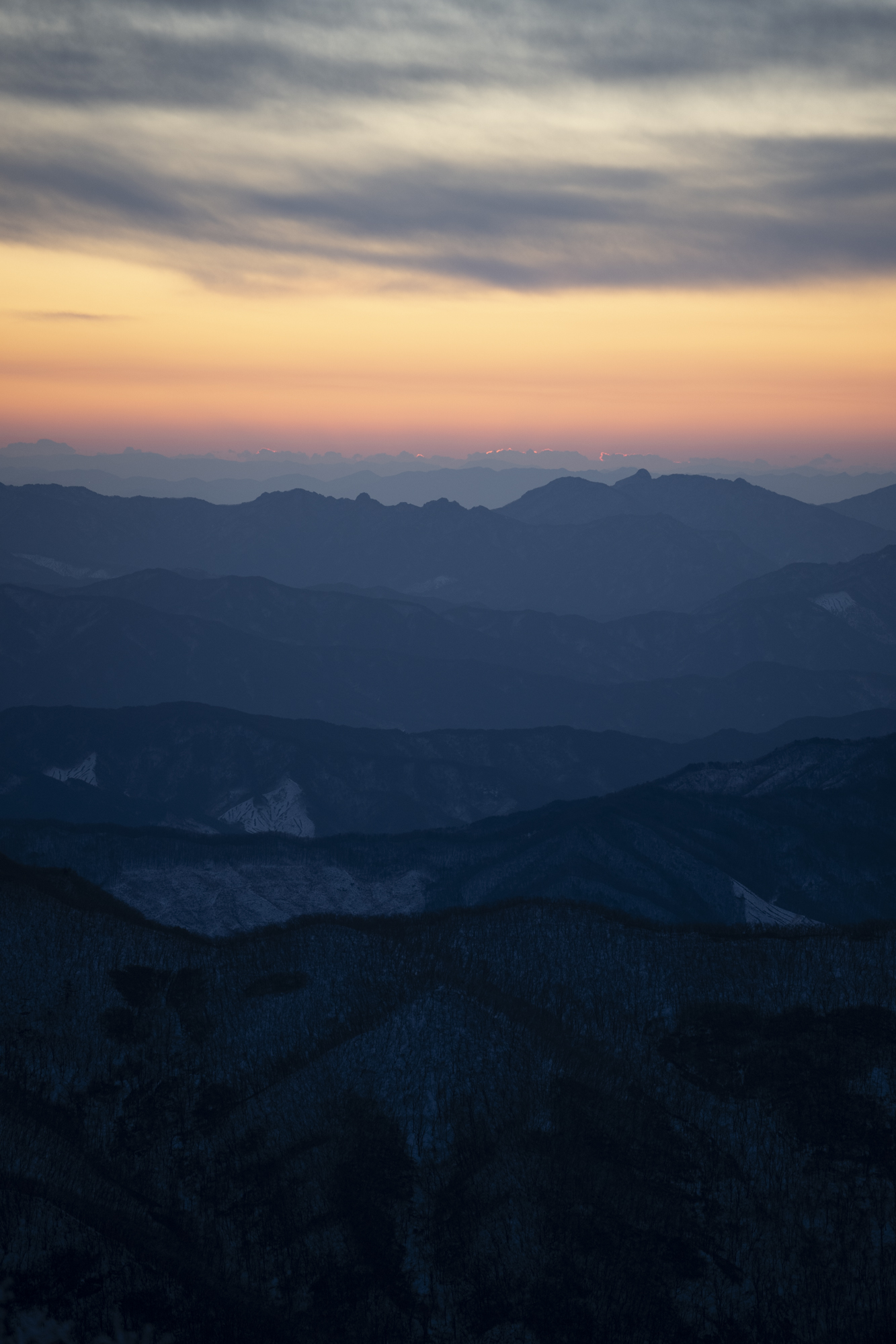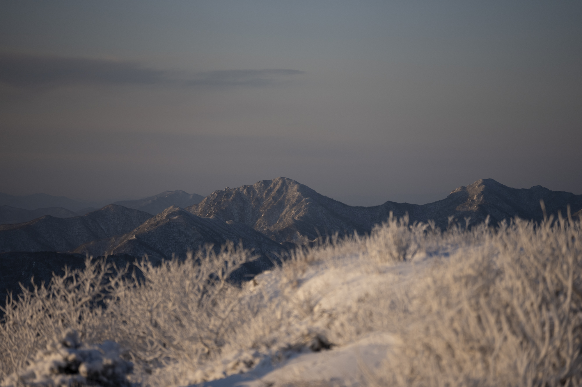 식사를 마친 후 소등 전에 잠깐 산책을 했다. 흐린 날이라 별 하나 보이지 않았지만, 투명하게 남은 일몰의 빛으로 덕유산의 멋진 풍광을 조금이나마 볼 수 있었다. 부디 내일은 좋은 날씨로 이곳까지 보람이 있기를 기도하며 잠을 청했다.
