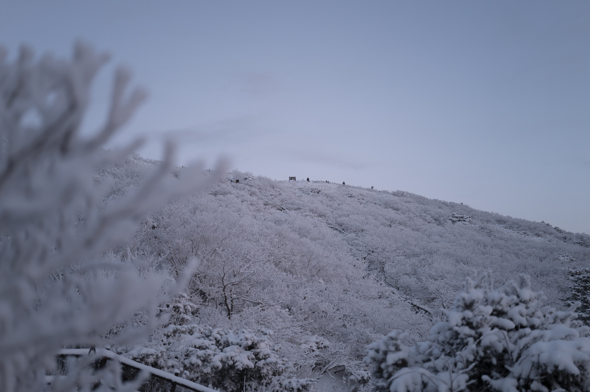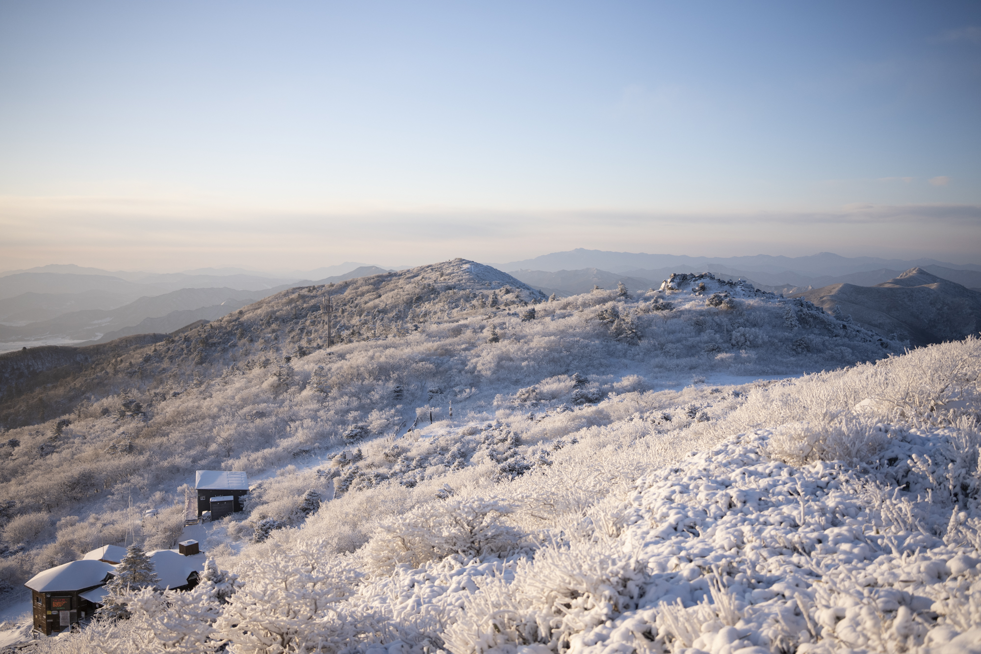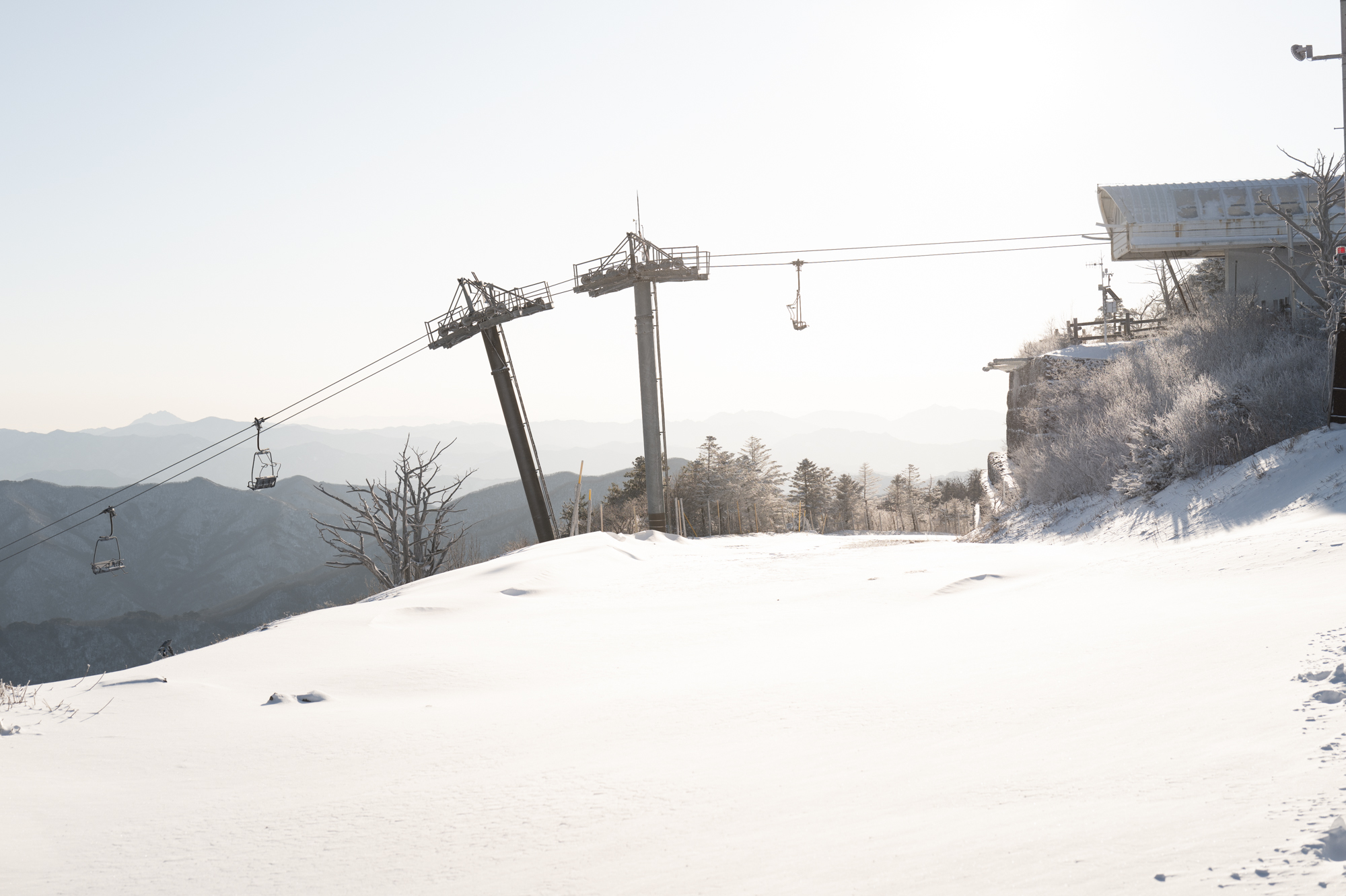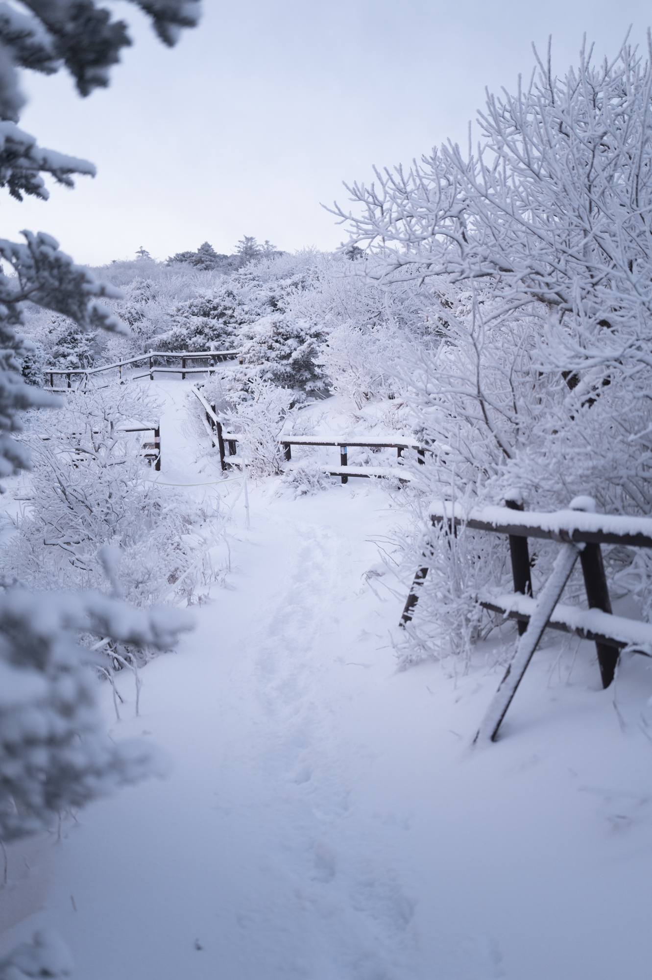 덕유산 정상 향적봉에는 두 갈래로 사람들이 줄지어 서있었다. 정상봉 인증샷을 찍기 위함이다. 인기 좋은 산이라면 쉽게 볼 수 있는 풍경이다. 나는 그들을 지나쳐 대피소로 향했다. 불필요한 짐을 두고 잠깐의 산행을 즐기기 위해서다. 리조트로 향하는 하행 곤돌라의 막차는 오후 4시 30분이라서, 4시에 나오면 사람이 없어서 여유롭게, 앞마당처럼 정상을 즐길 수 있다. 시야는 좀처럼 나아지지 않아 내일을 기약하며 대피소로 복귀했다.
